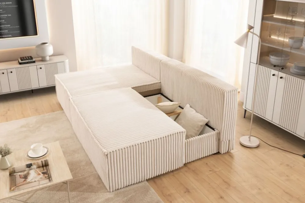 Narożnik rozkładany Solvero Mini – kompaktowy komfort z funkcją spania i pojemnikiem na pościel