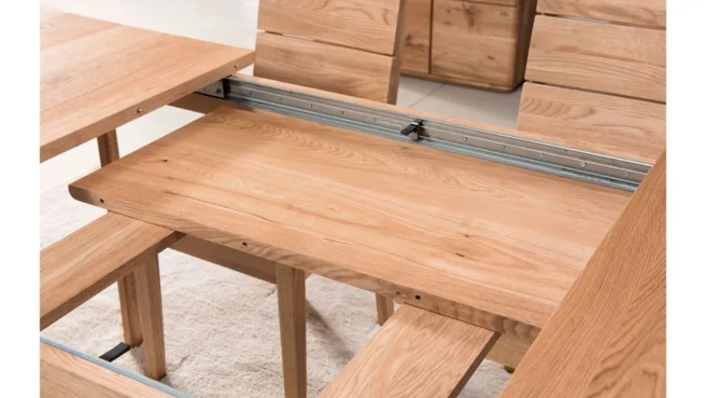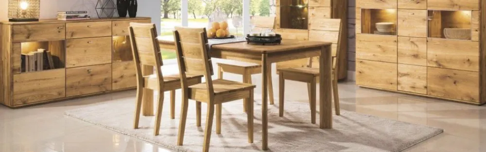 Stół to centrum życia rodzinnego, przy nim spotykamy się, spożywamy wspólne posiłki. Prezentowany stół to tradycyjna wersja z funkcją rozkładania. Stół posiada w standardzie 2 wkładki, które umożliwiają przedłużenie do długości 200 lub 240 cm. W skład kolekcji wchodzą witryny, komody, szafki RTV oraz krzesła, dzięki temu możemy stworzyć wymarzony zestaw mebli zarówno do salonu, jak i do jadalni.