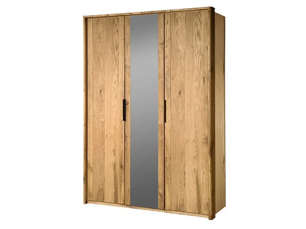 Jedną z propozycji jest trzydrzwiowa szafa z lustrem i ozdobną ramą, którą można wyposażyć w dekoracyjne podświetlenie. Szafa posiada wydzielone miejsce do zawieszenia kurtek i płaszczy oraz dwie półki do przechowywania. Można również wyposażyć szafę w dodatkowe półki – dostępne jako osobny produkt. Kompaktowe wymiary szafy pozwolą umieścić ją nawet w niewielkiej sypialni. Drzwi szafy wykonane są ze szczotkowanego drewna dębowego. Sypialnia Denver dostępna jest w naturalnym wybarwieniu dębu sęcznego.