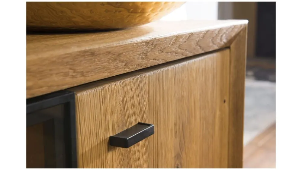 Takie właśnie są meble wykonane z naturalnych materiałów. Prostota i elegancja, bez zbędnych zdobień, wyważone proporcje i niezwykły urok naturalnego drewna dębowego to charakterystyczne cechy kolekcji Vigo. Urok szczotkowanych, drewnianych powierzchni, wykończonych olejem podkreślają subtelne metalowe akcenty oraz stylowe oświetlenie. Dzięki tym cechom kolekcja Vigo doskonale zaakcentuje indywidualny charakter wnętrza, a stylowe oświetlenie oraz naturalne kolory drewna ocieplą przestrzeń i uprzyjemnią relaks w domowym zaciszu.