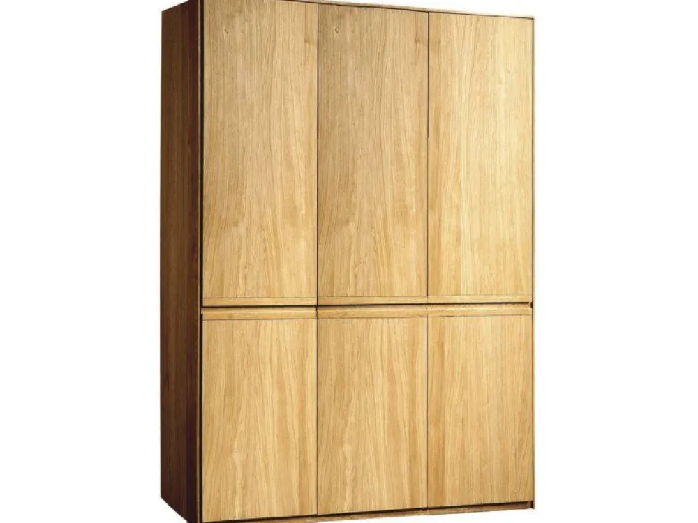Kolejna propozycja to szafa ubraniowa z pełnymi drzwiami, trzydrzwiowa. We wnętrzu znajdują się dwie półki górne oraz drążek na wieszaki. Duża przestrzeń jest również w dolnej części – możemy tam bez problemu przechowywać większe gabaryty – takie jak odkurzacz lub walizki podróżne. Mebel idealny do sypialni lub przedpokoju. Jej największym atutem jest duża pojemność. W sprzedaży dostępna również wersja dwudrzwiowa. W skład kolekcji wchodzą witryny, komody, szafki RTV, regały, łóżko, stoły oraz krzesła, dzięki temu możemy stworzyć wymarzony zestaw mebli zarówno do salonu, jadalni, biura jaki i sypialni. Kolekcja Atlanta dzięki mnogości brył zdecydowanie jest bardzo uniwersalną propozycją.