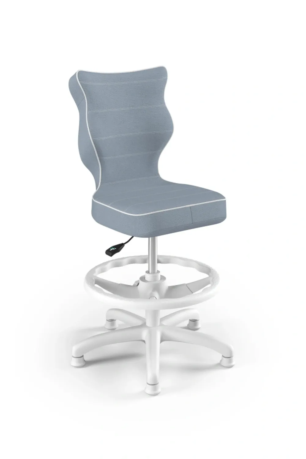 Petit to kolekcja krzeseł dziecięco-młodzieżowych o ergonomicznym kształcie siedziska dostosowanym do wzrostu użytkownika. Petit występuje w sześciu rodzajach tkanin, do których został przypisany określony sposób wykończenia krzesła. Model dostępny w czterech rozmiarach i w trzech kolorach komponentów – czarnym, białym oraz szarym. Podstawę krzesła wykonano z tworzywa sztucznego i włókna szklanego. W zestawie znajdują się kółka miękkie umożliwiające ruch krzesła zarówno po powierzchniach twardych jak i wykładzinach. Produkt zaprojektowany i wyprodukowany w Polsce. Wzrost użytkownika, rozmiar 3: 119 – 142 cm Wzrost użytkownika, rozmiar 4: 133 – 159 cm Wzrost użytkownika, rozmiar 5: 146 – 176,5 cm Wzrost użytkownika, rozmiar 6: 159 – 188 cm Wysokość blatu biurka Rozmiar 3-4 – wysokość biurka 63 – 69 cm Rozmiar 5-6 – wysokość biurka 70 – 82 cm Siedzisko: Ergonomiczne siedzisko wykonane z tworzywa sztucznego Mechanizm: Blacha siedziska z dźwignią prostą wykonana ze stali Osłonka: Teleskopowa osłonka na podnośnik gazowy wykonana z tworzywa sztucznego Wersje kolorystyczne: biała Baza: Podstawa pięcioramienna wykonana z tworzywa sztucznego i włókna szklanego Wersje kolorystyczne: biała Kółka: Kółka miękkie wykonane z tworzywa sztucznego, średnica 50 mm, średnica trzpienia fi 11 Wersje kolorystyczne: biała