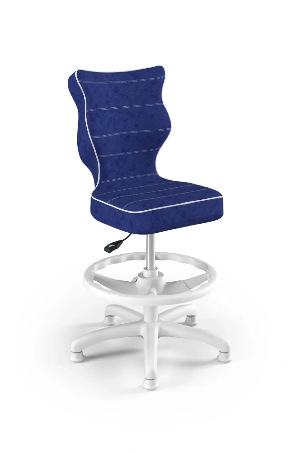 Petit to kolekcja krzeseł dziecięco-młodzieżowych o ergonomicznym kształcie siedziska dostosowanym do wzrostu użytkownika. Petit występuje w sześciu rodzajach tkanin, do których został przypisany określony sposób wykończenia krzesła. Model dostępny w czterech rozmiarach i w trzech kolorach komponentów – czarnym, białym oraz szarym. Podstawę krzesła wykonano z tworzywa sztucznego i włókna szklanego. W zestawie znajdują się kółka miękkie umożliwiające ruch krzesła zarówno po powierzchniach twardych jak i wykładzinach. Produkt zaprojektowany i wyprodukowany w Polsce. Wzrost użytkownika, rozmiar 3: 119 – 142 cm Wzrost użytkownika, rozmiar 4: 133 – 159 cm Wzrost użytkownika, rozmiar 5: 146 – 176,5 cm Wzrost użytkownika, rozmiar 6: 159 – 188 cm Wysokość blatu biurka Rozmiar 3-4 – wysokość biurka 63 – 69 cm Rozmiar 5-6 – wysokość biurka 70 – 82 cm Siedzisko: Ergonomiczne siedzisko wykonane z tworzywa sztucznego Mechanizm: Blacha siedziska z dźwignią prostą wykonana ze stali Osłonka: Teleskopowa osłonka na podnośnik gazowy wykonana z tworzywa sztucznego Wersje kolorystyczne: biała Baza: Podstawa pięcioramienna wykonana z tworzywa sztucznego i włókna szklanego Wersje kolorystyczne: biała Kółka: Kółka miękkie wykonane z tworzywa sztucznego, średnica 50 mm, średnica trzpienia fi 11 Wersje kolorystyczne: biała