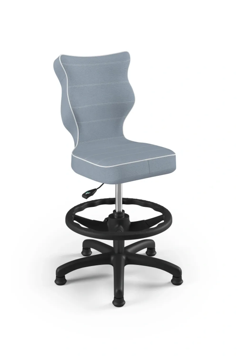 Petit to kolekcja krzeseł dziecięco-młodzieżowych o ergonomicznym kształcie siedziska dostosowanym do wzrostu użytkownika. Petit występuje w sześciu rodzajach tkanin, do których został przypisany określony sposób wykończenia krzesła. Model dostępny w czterech rozmiarach i w trzech kolorach komponentów – czarnym, białym oraz szarym. Podstawę krzesła wykonano z tworzywa sztucznego i włókna szklanego. W zestawie znajdują się kółka miękkie umożliwiające ruch krzesła zarówno po powierzchniach twardych jak i wykładzinach. Produkt zaprojektowany i wyprodukowany w Polsce. Wzrost użytkownika, rozmiar 3: 119 – 142 cm Wzrost użytkownika, rozmiar 4: 133 – 159 cm Wzrost użytkownika, rozmiar 5: 146 – 176,5 cm Wzrost użytkownika, rozmiar 6: 159 – 188 cm Wysokość blatu biurka Rozmiar 3-4 – wysokość biurka 63 – 69 cm Rozmiar 5-6 – wysokość biurka 70 – 82 cm Siedzisko: Ergonomiczne siedzisko wykonane z tworzywa sztucznego Mechanizm: Blacha siedziska z dźwignią prostą wykonana ze stali Kolumna: Podnośnik gazowy wykonany ze stali i tworzywa sztucznego Wersja kolorystyczna: czarna Osłonka: Teleskopowa osłonka na podnośnik gazowy wykonana z tworzywa sztucznego Wersje kolorystyczne: czarna Baza: Podstawa pięcioramienna wykonana z tworzywa sztucznego i włókna szklanego Wersje kolorystyczne: czarna Kółka: Kółka miękkie wykonane z tworzywa sztucznego, średnica 50 mm, średnica trzpienia fi 11 Wersje kolorystyczne: czarna