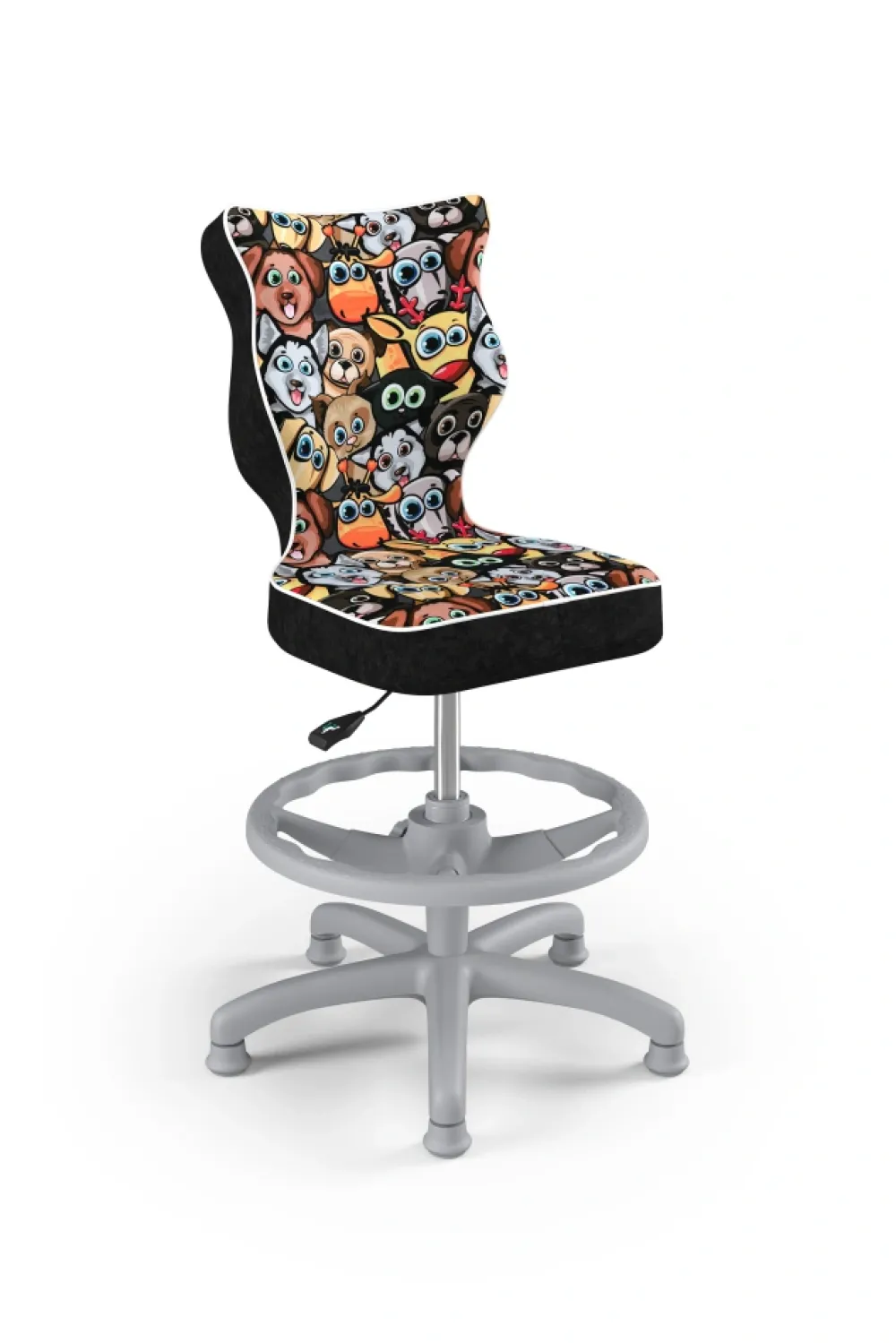 Petit to kolekcja krzeseł dziecięco-młodzieżowych o ergonomicznym kształcie siedziska dostosowanym do wzrostu użytkownika. Petit występuje w sześciu rodzajach tkanin, do których został przypisany określony sposób wykończenia krzesła. Model dostępny w czterech rozmiarach i w trzech kolorach komponentów – czarnym, białym oraz szarym. Podstawę krzesła wykonano z tworzywa sztucznego i włókna szklanego. W zestawie znajdują się kółka miękkie umożliwiające ruch krzesła zarówno po powierzchniach twardych jak i wykładzinach. Produkt zaprojektowany i wyprodukowany w Polsce. Wzrost użytkownika, rozmiar 3: 119 – 142 cm Wzrost użytkownika, rozmiar 4: 133 – 159 cm Wzrost użytkownika, rozmiar 5: 146 – 176,5 cm Wzrost użytkownika, rozmiar 6: 159 – 188 cm Wysokość blatu biurka Rozmiar 3-4 – wysokość biurka 63 – 69 cm Rozmiar 5-6 – wysokość biurka 70 – 82 cm Siedzisko: Ergonomiczne siedzisko wykonane z tworzywa sztucznego Mechanizm: Blacha siedziska z dźwignią prostą wykonana ze stali Osłonka: Teleskopowa osłonka na podnośnik gazowy wykonana z tworzywa sztucznego Wersje kolorystyczne: szara Baza: Podstawa pięcioramienna wykonana z tworzywa sztucznego i włókna szklanego Wersje kolorystyczne: szara Kółka: Kółka miękkie wykonane z tworzywa sztucznego, średnica 50 mm, średnica trzpienia fi 11 Wersje kolorystyczne: szara