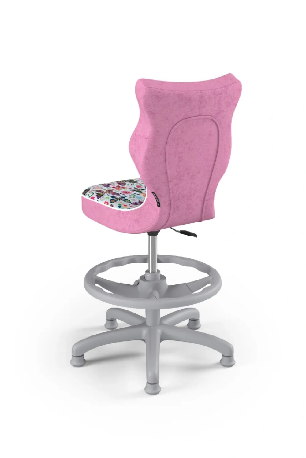 Petit to kolekcja krzeseł dziecięco-młodzieżowych o ergonomicznym kształcie siedziska dostosowanym do wzrostu użytkownika. Petit występuje w sześciu rodzajach tkanin, do których został przypisany określony sposób wykończenia krzesła. Model dostępny w czterech rozmiarach i w trzech kolorach komponentów – czarnym, białym oraz szarym. Podstawę krzesła wykonano z tworzywa sztucznego i włókna szklanego. W zestawie znajdują się kółka miękkie umożliwiające ruch krzesła zarówno po powierzchniach twardych jak i wykładzinach. Produkt zaprojektowany i wyprodukowany w Polsce. Wzrost użytkownika, rozmiar 3: 119 – 142 cm Wzrost użytkownika, rozmiar 4: 133 – 159 cm Wzrost użytkownika, rozmiar 5: 146 – 176,5 cm Wzrost użytkownika, rozmiar 6: 159 – 188 cm Wysokość blatu biurka Rozmiar 3-4 – wysokość biurka 63 – 69 cm Rozmiar 5-6 – wysokość biurka 70 – 82 cm Siedzisko: Ergonomiczne siedzisko wykonane z tworzywa sztucznego Mechanizm: Blacha siedziska z dźwignią prostą wykonana ze stali Osłonka: Teleskopowa osłonka na podnośnik gazowy wykonana z tworzywa sztucznego Wersje kolorystyczne: szara Baza: Podstawa pięcioramienna wykonana z tworzywa sztucznego i włókna szklanego Wersje kolorystyczne: szara Kółka: Kółka miękkie wykonane z tworzywa sztucznego, średnica 50 mm, średnica trzpienia fi 11 Wersje kolorystyczne: szara