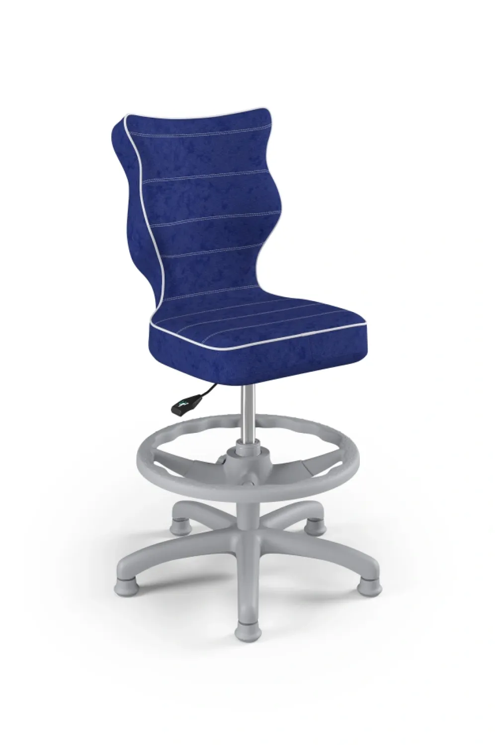 Petit to kolekcja krzeseł dziecięco-młodzieżowych o ergonomicznym kształcie siedziska dostosowanym do wzrostu użytkownika. Petit występuje w sześciu rodzajach tkanin, do których został przypisany określony sposób wykończenia krzesła. Model dostępny w czterech rozmiarach i w trzech kolorach komponentów – czarnym, białym oraz szarym. Podstawę krzesła wykonano z tworzywa sztucznego i włókna szklanego. W zestawie znajdują się kółka miękkie umożliwiające ruch krzesła zarówno po powierzchniach twardych jak i wykładzinach. Produkt zaprojektowany i wyprodukowany w Polsce. Wzrost użytkownika, rozmiar 3: 119 – 142 cm Wzrost użytkownika, rozmiar 4: 133 – 159 cm Wzrost użytkownika, rozmiar 5: 146 – 176,5 cm Wzrost użytkownika, rozmiar 6: 159 – 188 cm Wysokość blatu biurka Rozmiar 3-4 – wysokość biurka 63 – 69 cm Rozmiar 5-6 – wysokość biurka 70 – 82 cm Siedzisko: Ergonomiczne siedzisko wykonane z tworzywa sztucznego Mechanizm: Blacha siedziska z dźwignią prostą wykonana ze stali Osłonka: Teleskopowa osłonka na podnośnik gazowy wykonana z tworzywa sztucznego Wersje kolorystyczne: szara Baza: Podstawa pięcioramienna wykonana z tworzywa sztucznego i włókna szklanego Wersje kolorystyczne: szara Kółka: Kółka miękkie wykonane z tworzywa sztucznego, średnica 50 mm, średnica trzpienia fi 11 Wersje kolorystyczne: szara