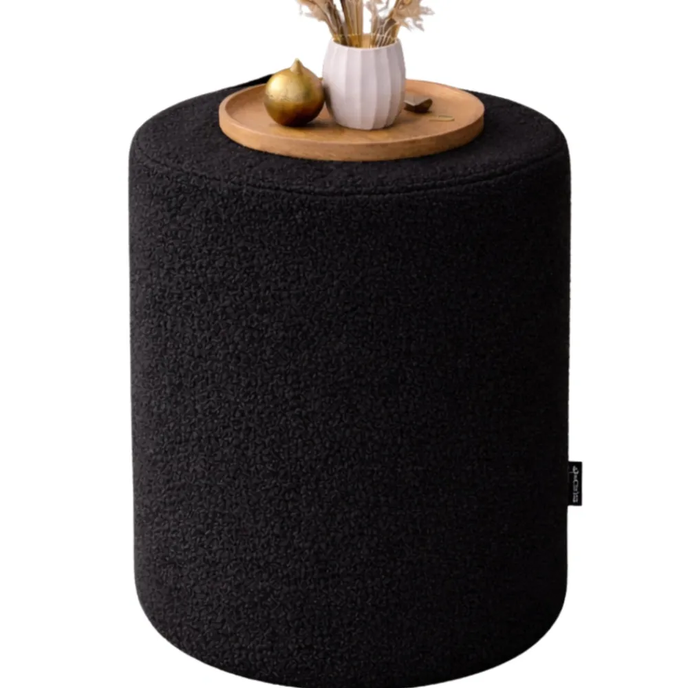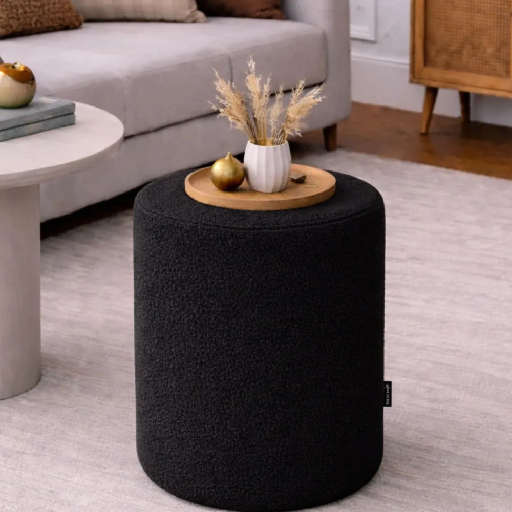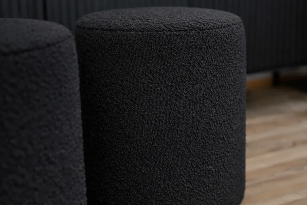 Okrągła pufa Roller w tkaninie bukla – odkryj wyjątkowy komfort
