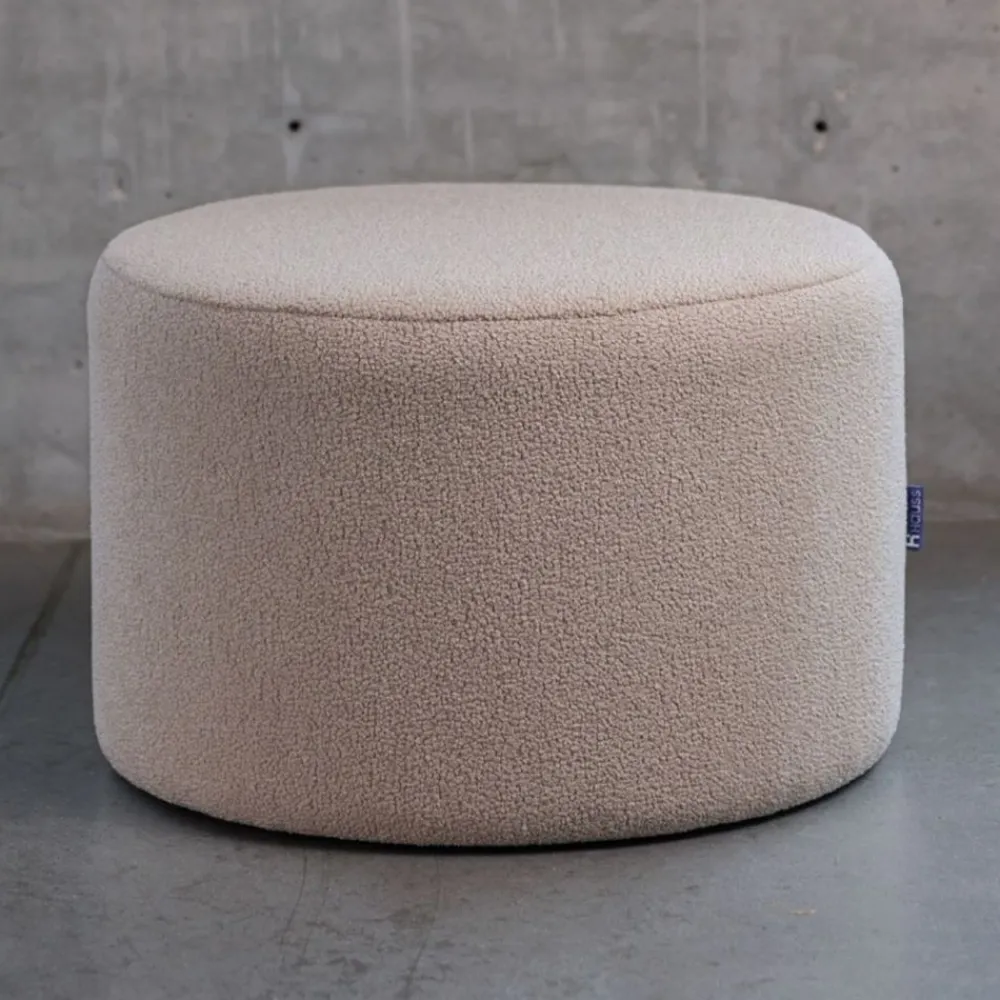 Okrągła pufa Roller w tkaninie bukla – wyjątkowy komfort w większym wydaniu