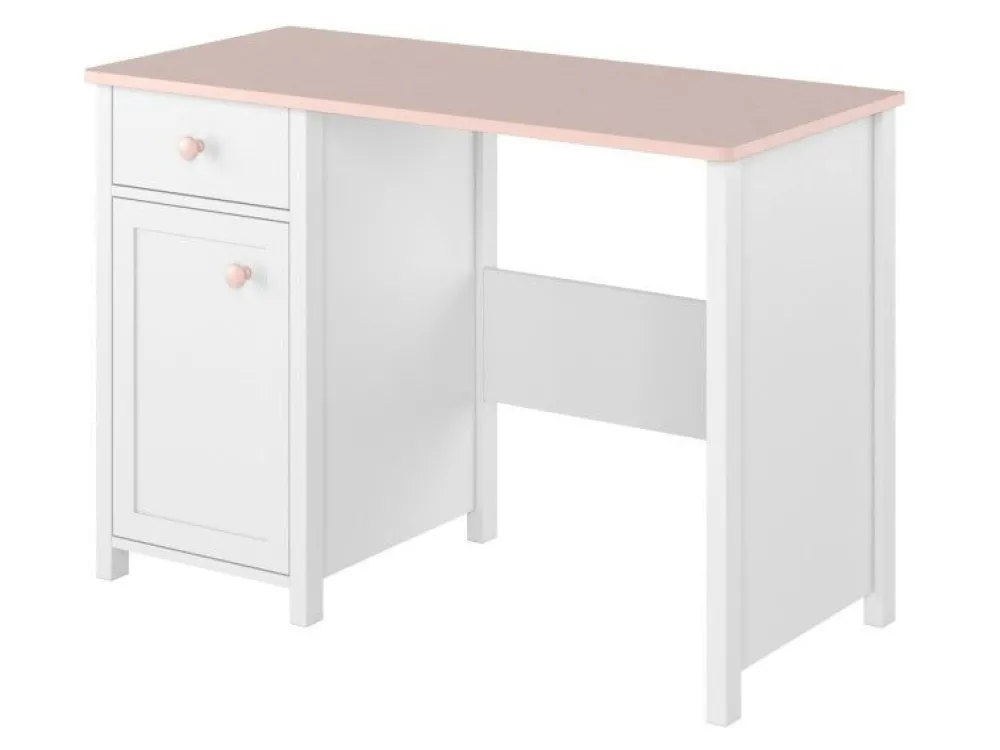 Kolejną propozycją jest klasyczne biurko z dodatkową szafką i szufladą. Mebelek sprawdzi się idealnie przy odrabianiu lekcji lub w czasie twórczych zabaw jak kolorowanie i rysowanie. Idealnym uzupełnieniem są dedykowane nadstawki – jedna to nadstawka, która wyposażona jest w dodatkowe półki i organizery, druga natomiast to propozycja z lustrem, która szybko odmieni biurko w pierwszą toaletkę małej księżniczki.