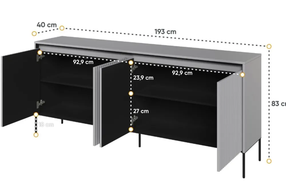 Pragniesz znaleźć mebel, który nie tylko zaspokoi Twoje potrzeby przechowywania, ale także wzbogaci i upiększy Twój salon? Komoda TR-04 doskonale spełnia te wymagania! Ta przestronna i stylowa komoda nie tylko dodaje funkcjonalności, lecz również wnosi elegancję i wyjątkowy charakter do Twojej przestrzeni. Komoda w salonie to nie tylko miejsce do przechowywania, ale także designerski element dekoracyjny. Meble z kolekcji TREND wyróżniają się unikalnymi ryflowanymi frontami, które nadają im niepowtarzalnego wyglądu i wyrazistości.