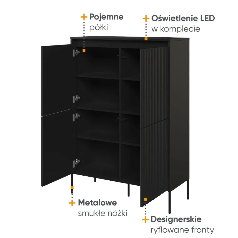 Niezwykłym elementem kolekcji TREND są ryflowane fronty, które nadają meblom niepowtarzalny charakter. Dodatkowo, komoda jest wyposażona w oświetlenie LED, które podkreśla przestrzenność bryły, dodając mu eleganckiego wyglądu. Te stylowe i eleganckie detale wyróżniają tę komodę spośród innych mebli.