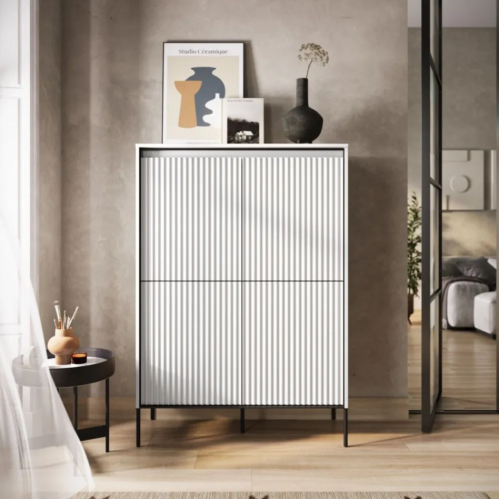 Wysoka komoda TR-03 gwarantuje nie tylko komfortowe przechowywanie, ale również stanowi designerską ozdobę wnętrza. Dzięki połączeniu funkcjonalności i wysokiej jakości wykonania, ta komoda z kolekcji TREND jest doskonałym rozwiązaniem zarówno pod względem praktycznym, jak i estetycznym, dodając wyjątkowego uroku i stylu Twojemu domowi.