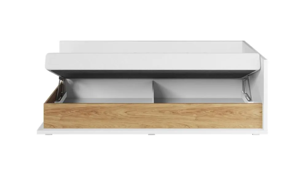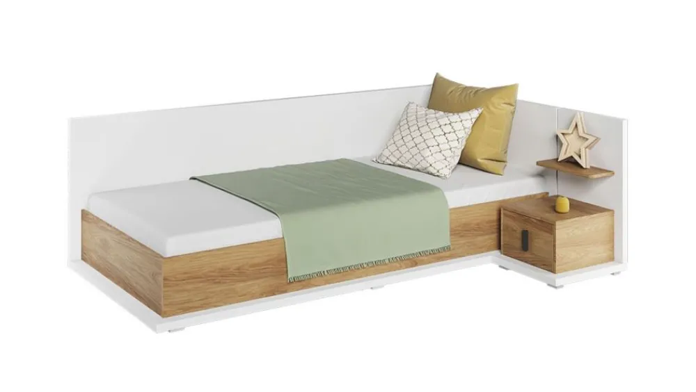 Łóżko Simi posiada duży pojemnik na pościel oraz materac bonellowy w cenie. Wysokość materaca wynosi 18 cm. Górna i boczna część mebla zostały zabezpieczone dodatkową blendą, dzięki której łóżko może pełnić funkcję kanapy. Wystarczy uzupełnić je o poduszki aby uzyskać wygodne oparcie!