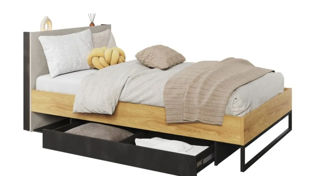 Nasze łóżko młodzieżowe to esencja stylu i komfortu. Z wygodnym stelażem szczebelkowym i wysokim zagłówkiem, zapewniającym nie tylko wygodę, ale i charakter każdemu pomieszczeniu. Wzbogacone o praktyczną półkę ukrytą w zagłówku oraz oświetlenie wzbudzające energię, nasze łóżko to niezastąpiony element każdej sypialni dla nastolatków. Dodatkowo, szuflady pod łóżkiem zapewnią miejsce na przechowywanie pościeli i koców, sprawiając, że Twoje wnętrze będzie nie tylko stylowe, ale i funkcjonalne.