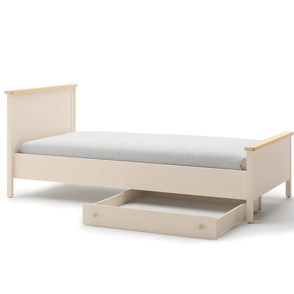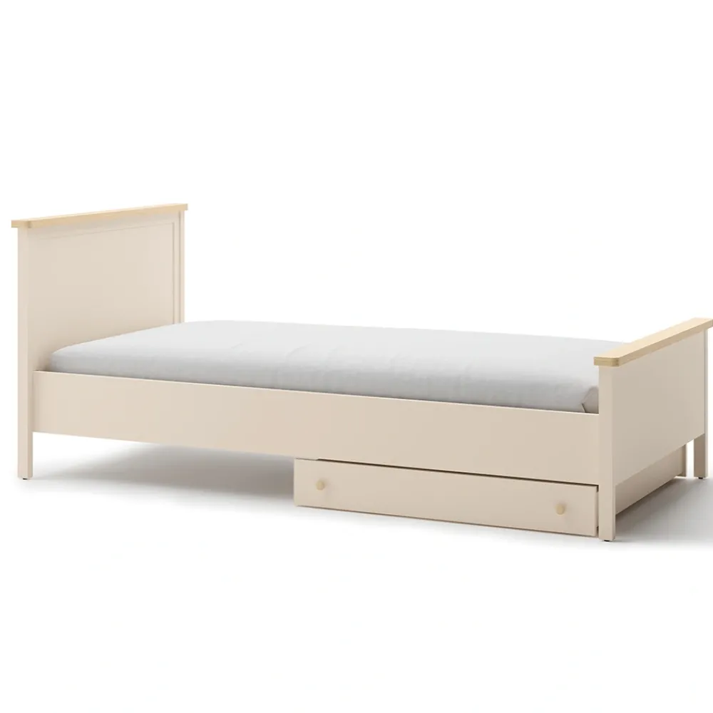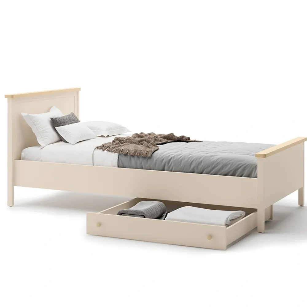 Łóżko młodzieżowe Story SO-16 to nie tylko mebel do spania, ale także ważny element wystroju pokoju. Neutralne barwy beżu i dębu vincenza bielona pozwalają łatwo dopasować je do innych mebli. Dzięki temu tworzy spójną aranżację zarówno w klasycznych, jak i nowoczesnych wnętrzach. Eleganckie wykończenie sprawia, że łóżko prezentuje się wyjątkowo estetycznie. To łóżko dla dziecka, które wprowadza harmonię i przytulny klimat do przestrzeni. Zestawione z szafą, biurkiem czy komodą z kolekcji Story pozwala stworzyć kompletny i funkcjonalny pokój. To idealne rozwiązanie dla rodziców ceniących połączenie praktyczności i pięknego designu.