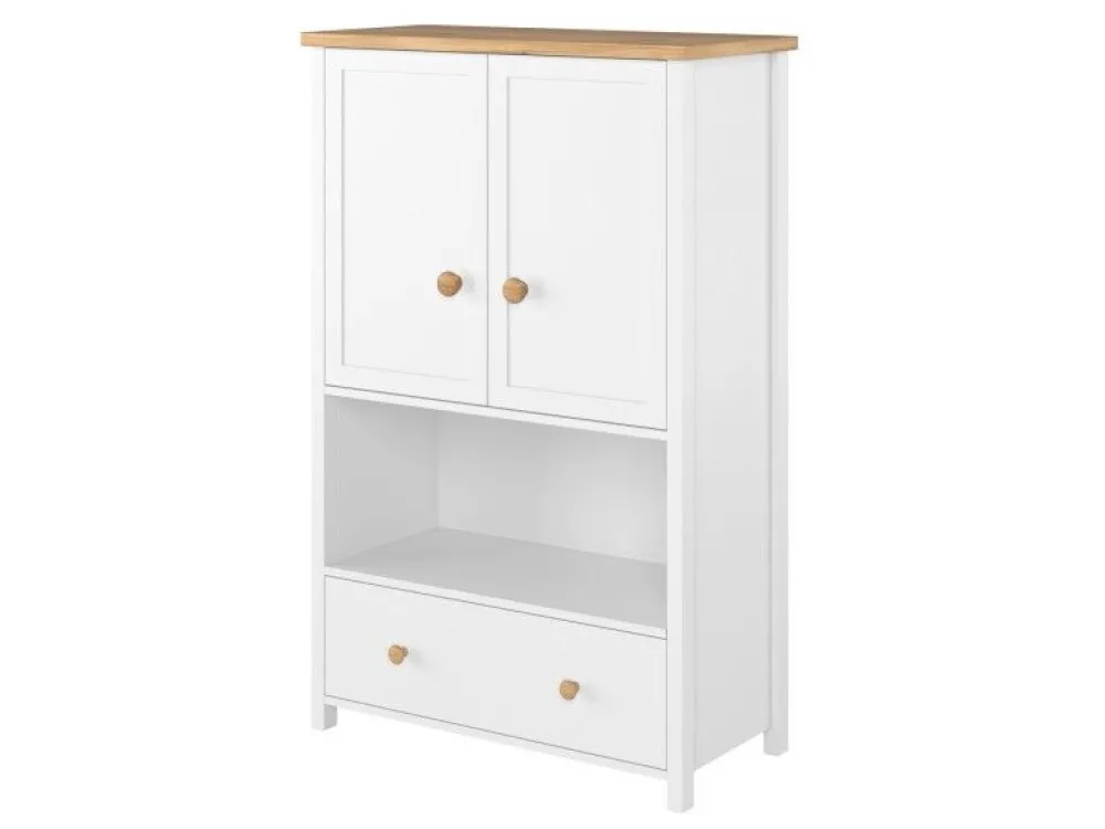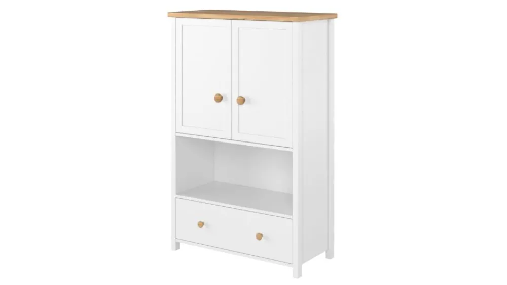 Kolejną propozycją jest wysoka komoda, która dzięki połączeniu szafek, otwartej wnęki i dużej szuflady jest bardzo funkcjonalną pozycją na liście kolekcji Story.