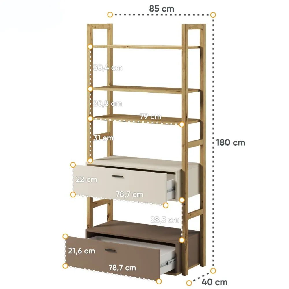 Doskonały mebl, który łączy funkcjonalność z estetyką, aby stworzyć niepowtarzalne przestrzenie w pokojach zarówno dziewczynek, jak i chłopców, niezależnie od ich wieku. Nasz regał LENNY został zaprojektowany z myślą o młodych ludziach, którzy cenią sobie zarówno styl, jak i praktyczne rozwiązania. Dzięki subtelnie połączonym kolorom beżowym, truflowym i dekorowi w kolorze dąb artisan, mebel prezentuje się nowocześnie i elegancko, doskonale wpisując się w różnorodne aranżacje wnętrz.