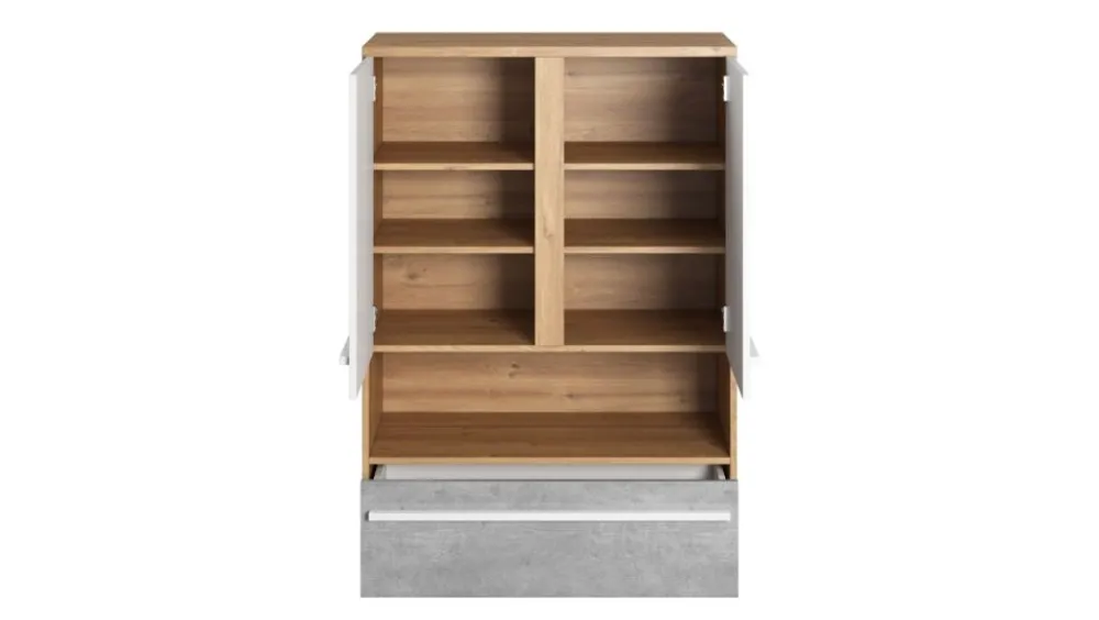 W kolekcji PLANO znaleźć wiele różnych mebli, w tym praktyczną szafkę, która może służyć jako dodatkowe miejsce do przechowywania ubrań lub dokumentów. Dodatkowym atutem jest półka np. na książki oraz szuflada.