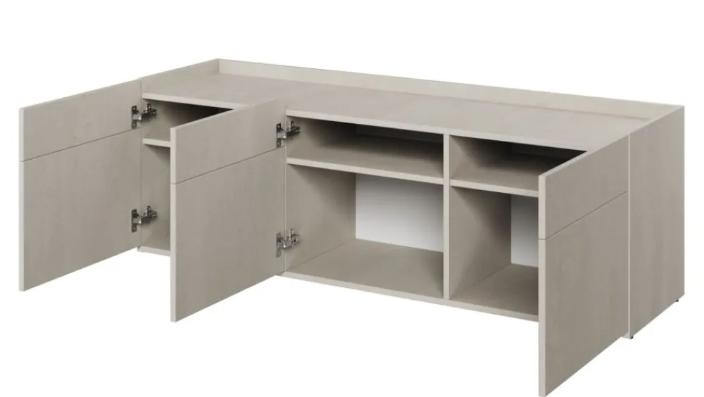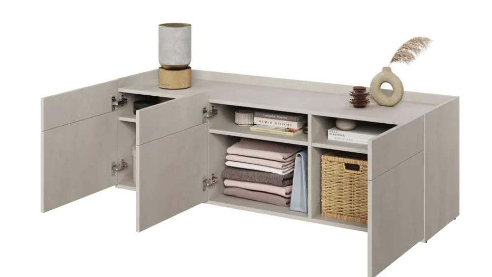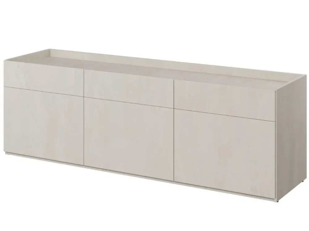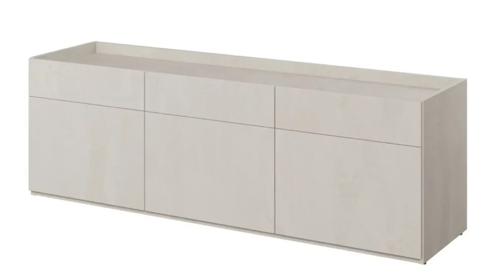 Szafka w nowoczesnym stylu do pokoju młodzieżowego. Bryła mebla jest trzydrzwiowa, a za drzwiczkami skrywa się funkcjonalny układ półek, dzięki któremu ułatwi nastolatkom utrzymywanie porządku. W meblu został obniżony blat, dzięki czemu to co będziesz chciał wyeksponować na jego powierzchni jest zabezpieczone przed upadkiem. Szafka z powodzeniem może zostać zaaranżowana na przykład jako szafka RTV.