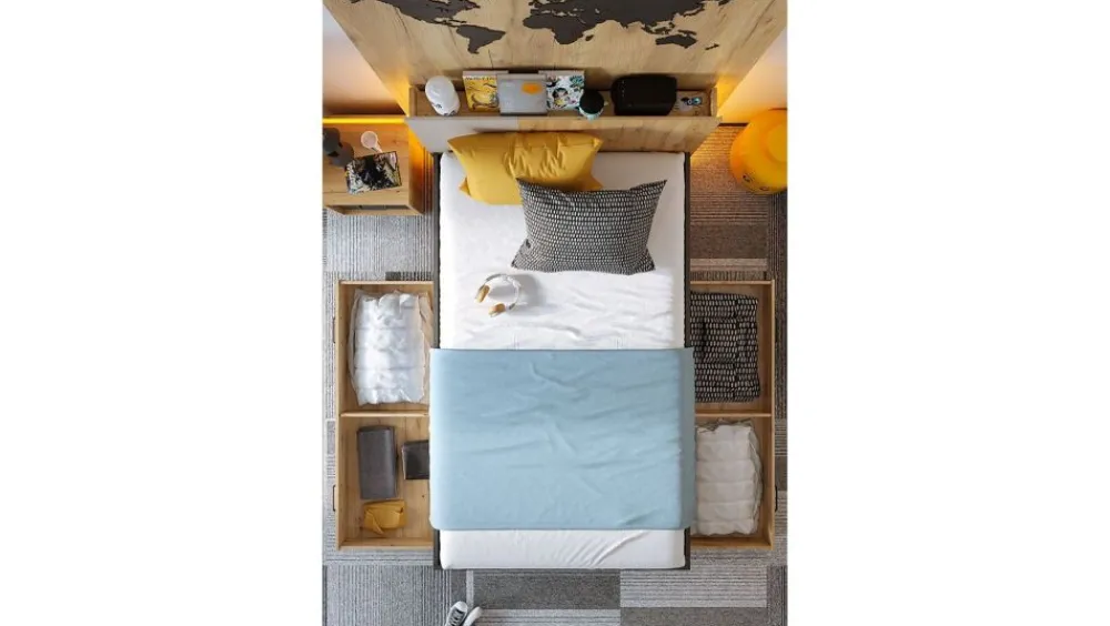 Kolekcja Qubic zdecydowanie należy do nowoczesnych propozycji, głównie dzięki zastosowaniu ciekawego zestawienia kolorystycznego. Drewnopodobny dekor w połączeniu z subtelną szarością ciekawie kontrastuje z ciemniejszymi wstawkami w kolorze surowej stali. Połączenie kolorów jest niezwykle uniwersalne, przez co kolekcja sprawdzi się zarówno w pokoju dziewcząt jak i chłopców. W większości elementów zastosowano oświetlenie Led w kolorze pomarańczowym, które dodaje energii i tworzy niepowtarzalny klimat.