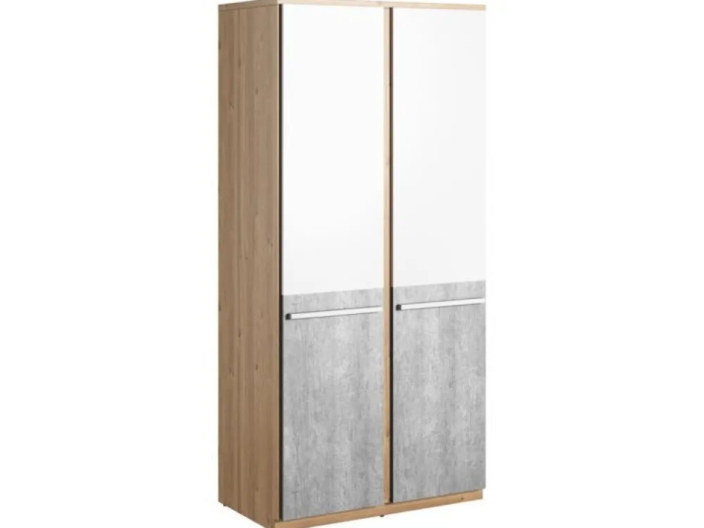 W kolekcji PLANO znaleźć można kilka wariantów szaf, które dzięki sprytnym rozwiązaniom projektowym doskonale zagospodarują przestrzeń przeznaczoną do przechowania ubrań. Jedną z propozycji jest pojemna szafa dwudrzwiowa, która po jednej stronie posiada drążek do wieszania ubrań, po drugiej zaś dużą ilość półek.