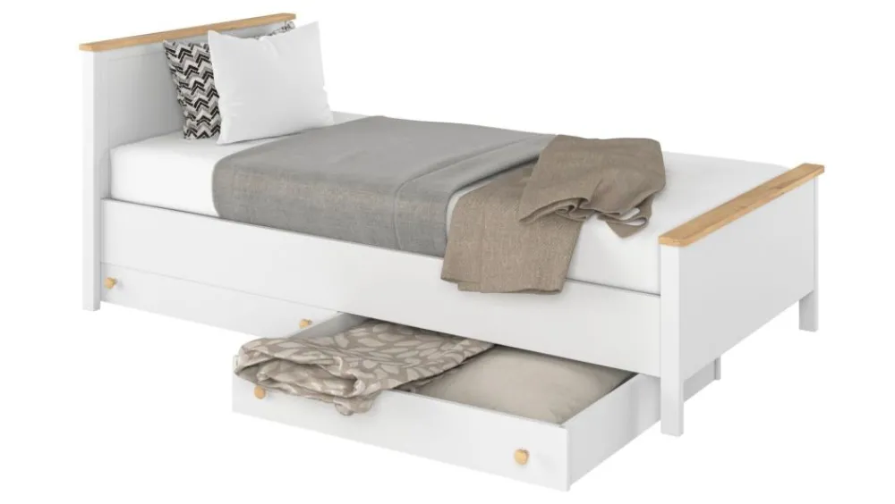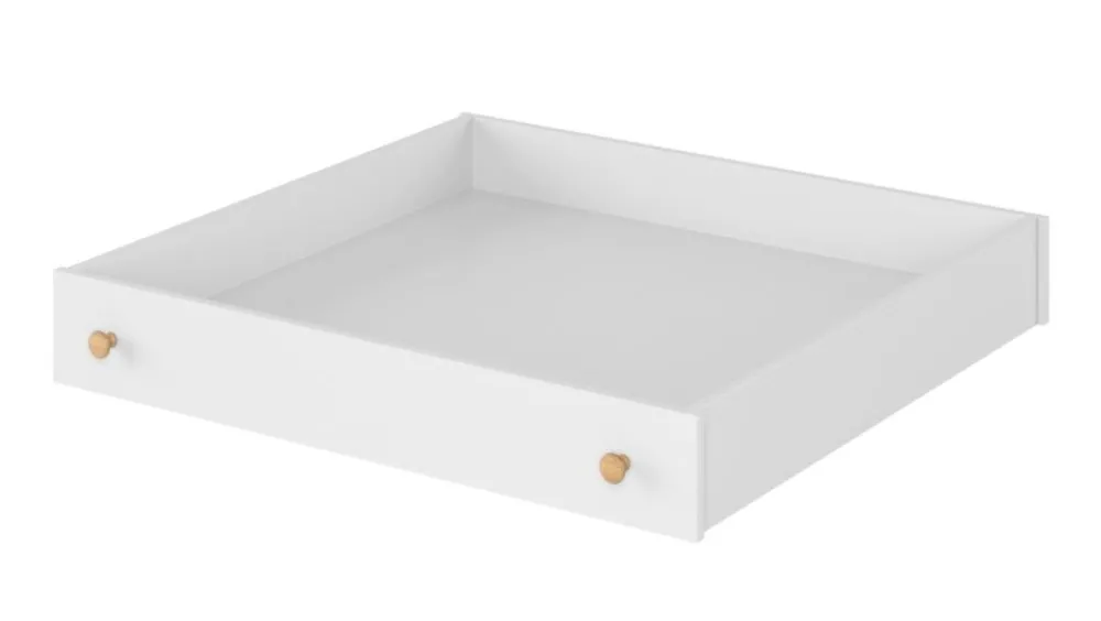 Szuflada jest idealnym dopełnieniem łóżka z kolekcji, z powodzeniem pomieści pościel. Istnieje możliwość zastosowania dwóch szuflad pod łóżko Story.