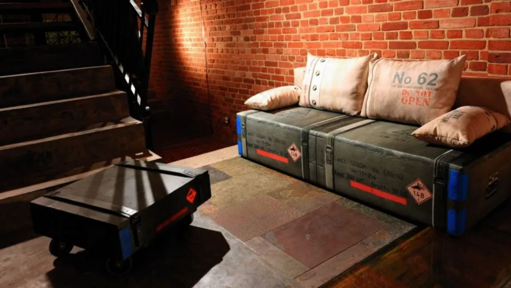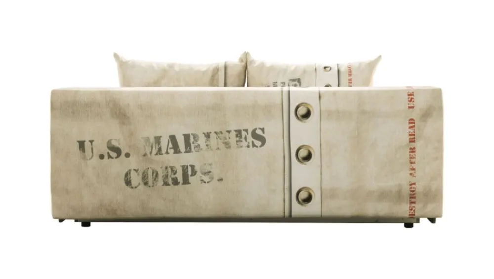 Model Military dedykowany jest dla miłośników militariów, a inspiracją była skrzynia do przechowywania i transportu wojskowego sprzętu. Tkanina jest gładka w dotyku i specjalnie przeznaczona do precyzyjnego nadruku, dzięki czemu mebel jest najwyższej jakości.