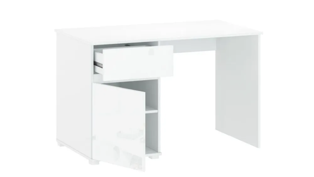 Biurko z kolekcji Lingo, które oferuje Mebelbos idealnie nadaje się do pokoju młodzieżowego…, ale również świetnie sprawdzi się w gabinetach lub biurach. Komfortu dodadzą szuflada oraz półki, co pozwoli Ci na uporządkowanie wszelkich drobiazgów, których możesz potrzebować, aby mieć je w zasięgu ręki, ale też by nie zabierały Ci miejsca na blacie biurka. Cała kolekcja Lingo jest w uniwersalnym, białym kolorze, co daje Ci szereg możliwości w aranżacji niemalże każdego pomieszczenia w domu lub mieszkaniu i z pewnością zadowoli każdego wielbiciela nienagannej prostoty w nowoczesnej odsłonie.