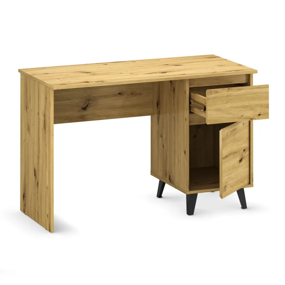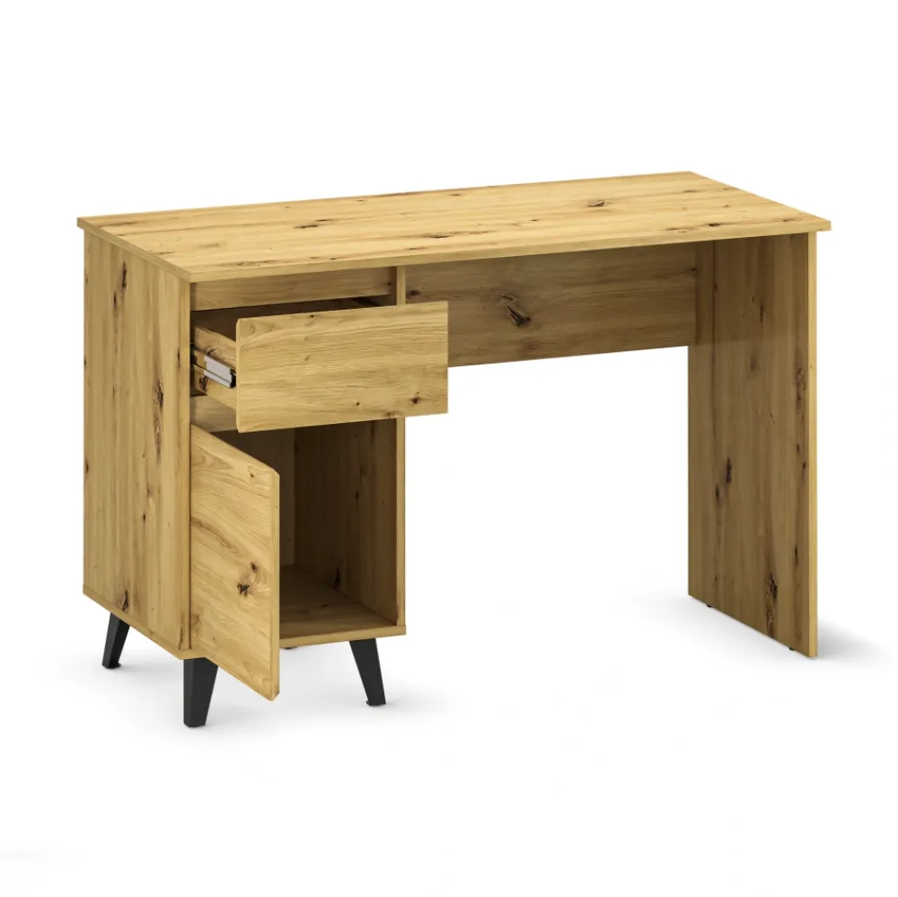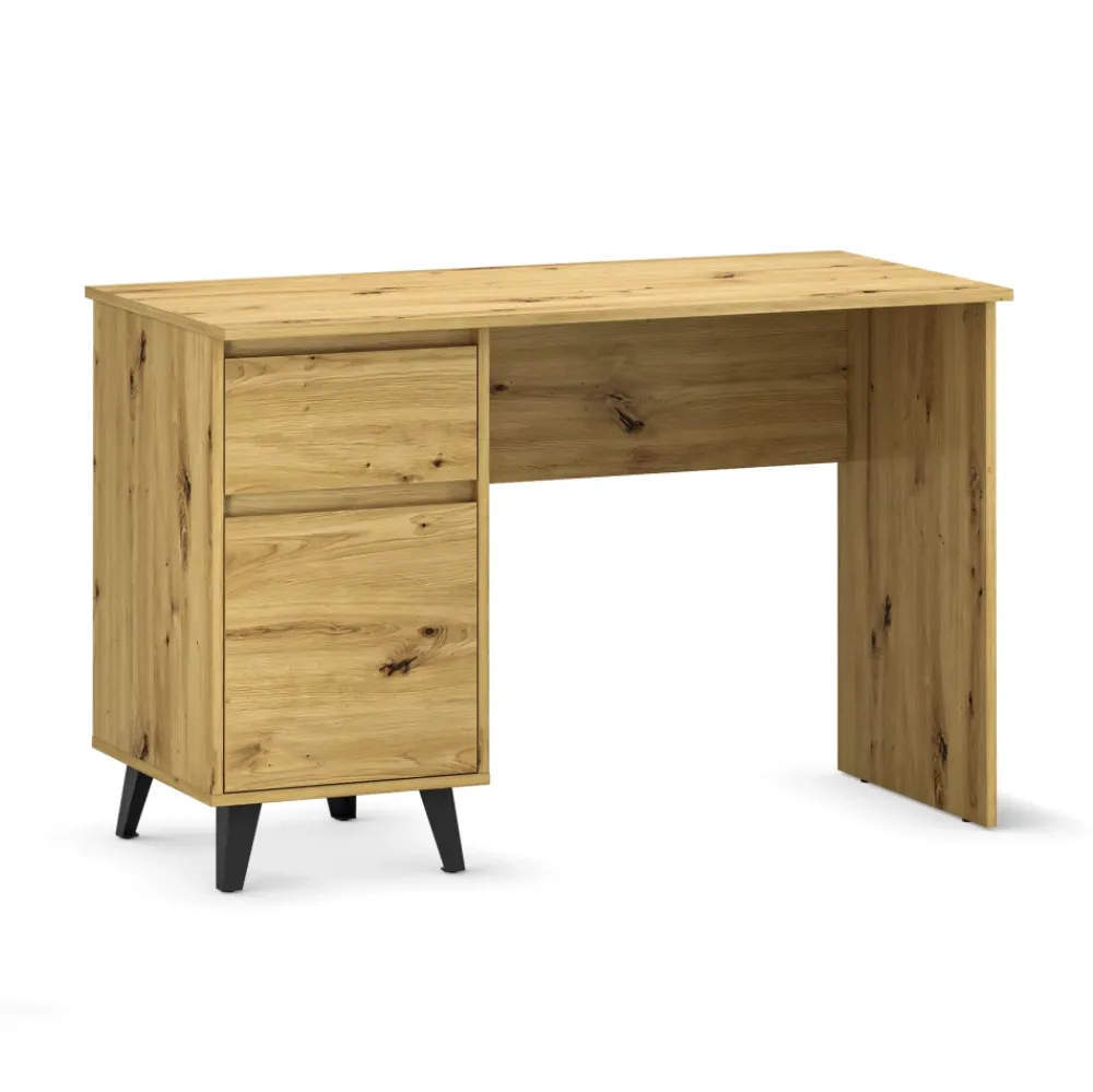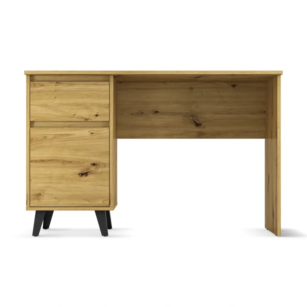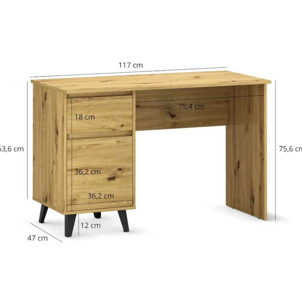Biurko BORG dąb artisan to funkcjonalny wybór do domowego biura, pokoju młodzieżowego lub nowoczesnego gabinetu. Praktyczna szafka z półkami oraz pojemna szuflada pozwalają wygodnie przechowywać dokumenty, akcesoria biurowe i wszystkie niezbędne drobiazgi. Dzięki temu Twoja przestrzeń do pracy jest zawsze uporządkowana, a Ty możesz skupić się na tym, co naprawdę ważne.
