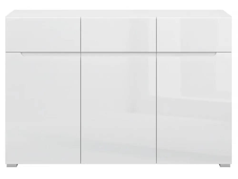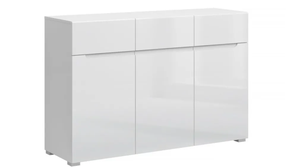 Komoda 3D3S od Mebelbos to mebel, który sprawdzi Ci się niemalże w każdym pomieszczeniu, salonie, sypialni lub przedpokoju. Komoda została zaprojektowana tak, że posiada trzy szuflady oraz trzy drzwiczki, które skrywają półki, po jednej za każdymi z drzwiczek. Klasyczna forma kolekcji w uniwersalnym białym kolorze, który dodatkowo jest w połysku daje szereg możliwości na umeblowanie niemal każdego wnętrza w Twoim domu. Praktyczna strefa z trzema szufladami, przyda Ci się na drobne przedmioty, gazety, czy biżuterię, a strefa z drzwiczkami to miejsce, które praktycznymi zmieści wiele ubrań, książek lub innych rzeczy. Subtelne frezy pełniące rolę uchwytów na frontach stają się bardziej eleganckie i wyraziste. Biel w wysokim połysku nadaje aranżacjom lekkości. Postaw na pewnik, który idealnie zgra się z każdym kolorem ścian i dodatków wprowadzając do wnętrz nowoczesność i elegancję.