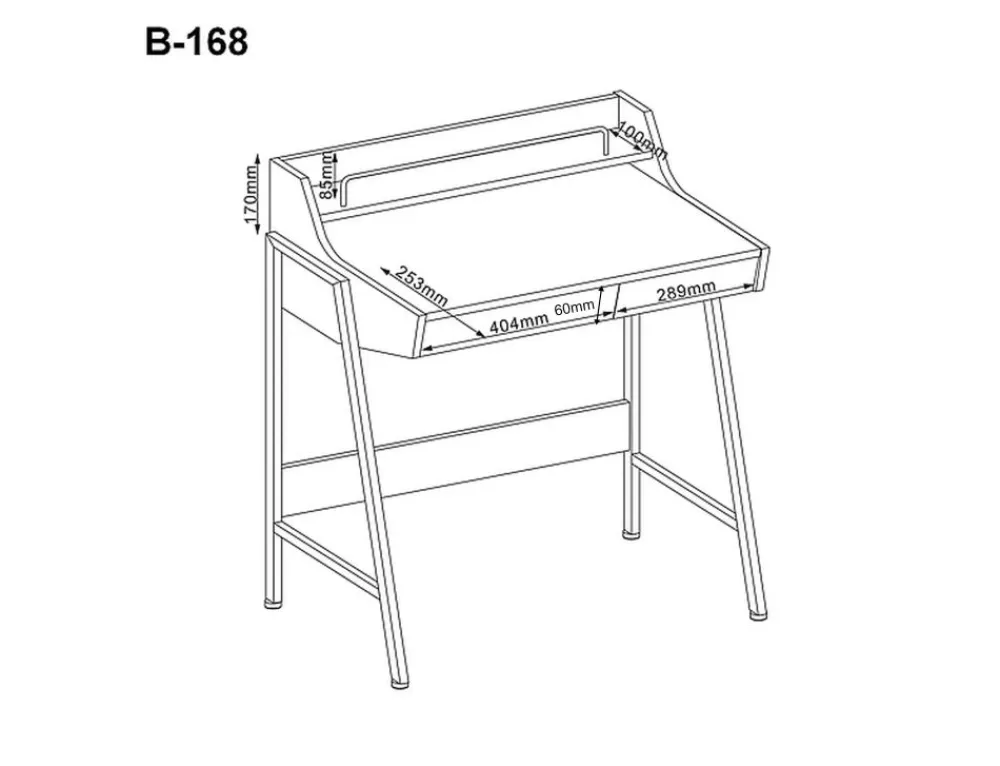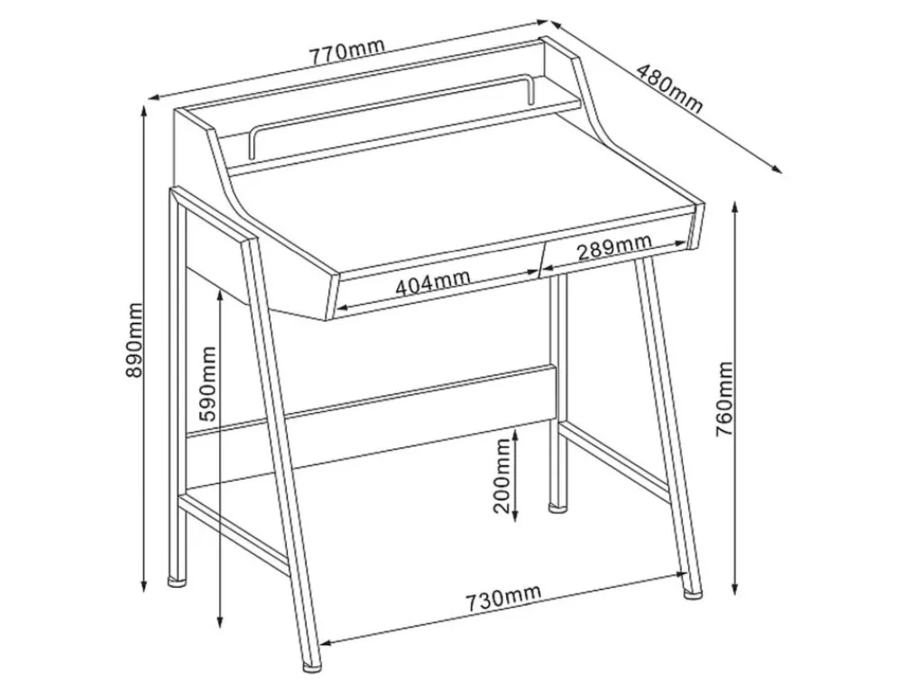 Biurko, blat: MDF, kolor: dąb, stelaż: metal, kolor: ciemny brąz. Wysokość szuflad 6cm.