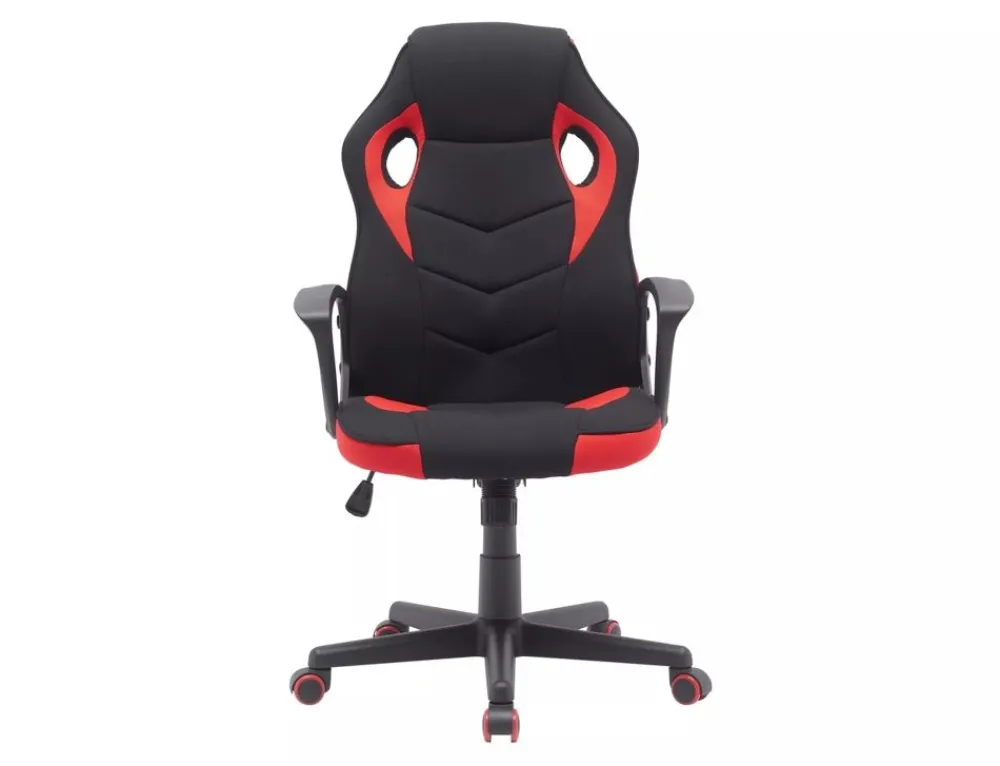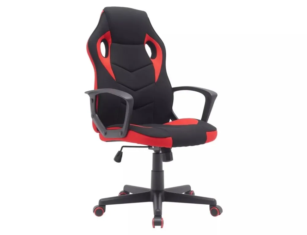 Fotel obrotowy, tkanina, kolor: czarny / czerwony, stelaż tworzywo: kolor czarny, mechanizm TILT, stałe podłokietniki, kauczukowe kółka, max obciążenie 120kg. Kolor stelaża#//#Kolor tapicerki#//#Maksymalne obciążenie#//#Materiał stelaż#//#Materiał tapicerki#//#Rodzaj#//#Szerokość#//#Wysokość