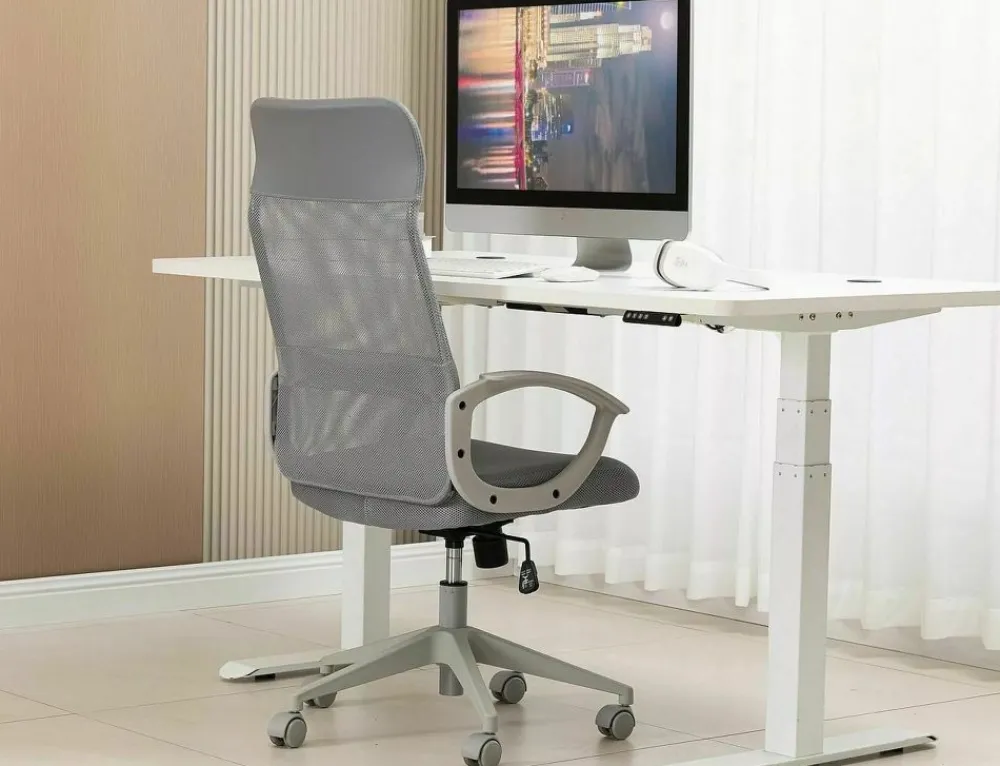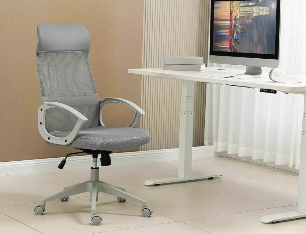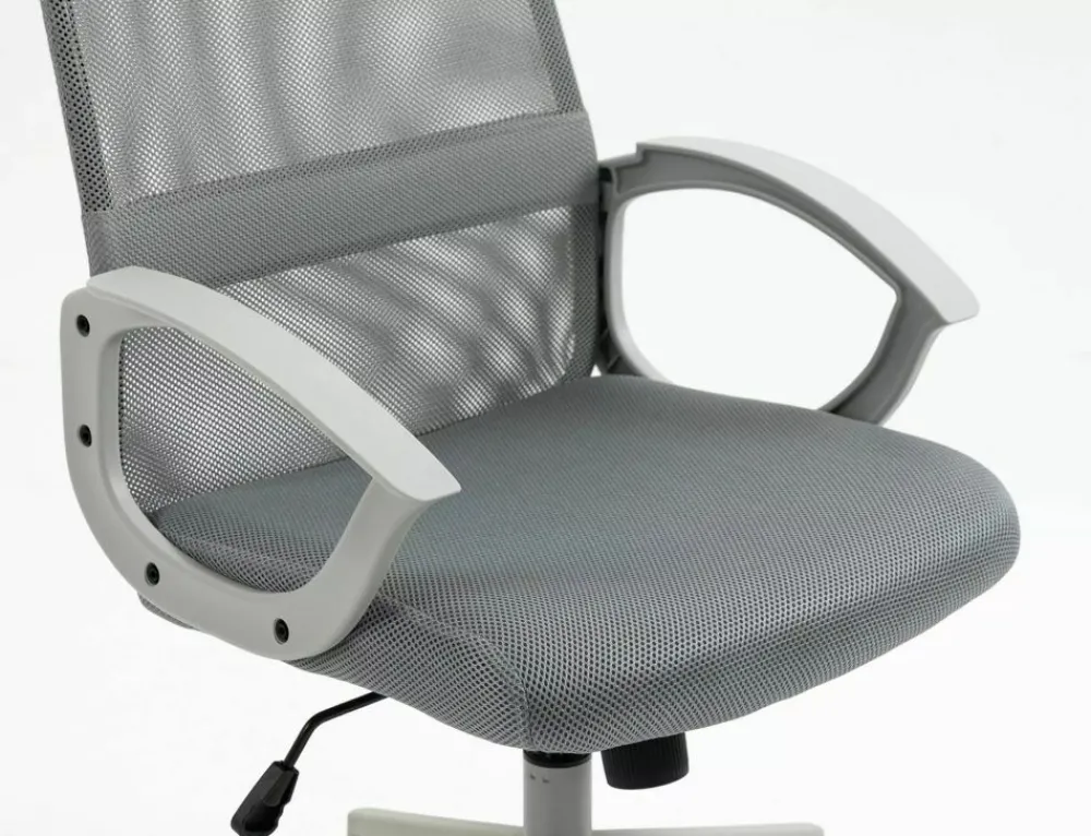 Fotel obrotowy, tkanina membranowa / siatka / skóra syntetyczna, kolor: szary, stelaż tworzywo, kolor: szary, mechanizm TILT, stałe podłokietniki.