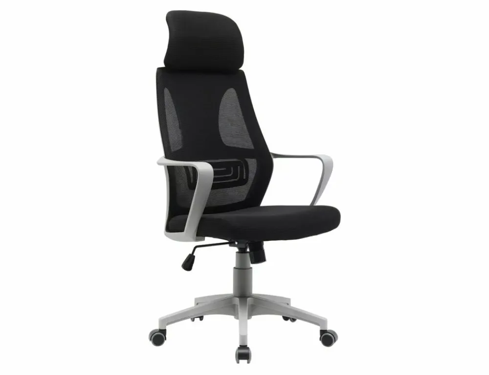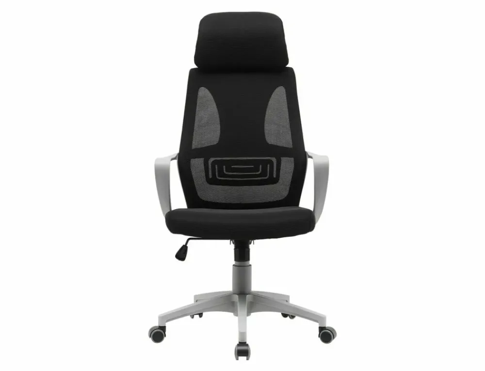 Fotel obrotowy, tkanina membranowa / siatka, kolor czarny, stelaż: kolor szary, mechanizm TILT, stałe podłokietniki i zagłówek, kółka kauczukowe, max obciążenie 120kg.