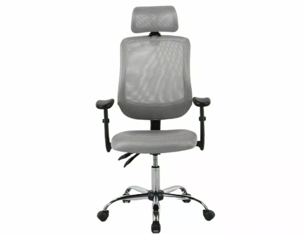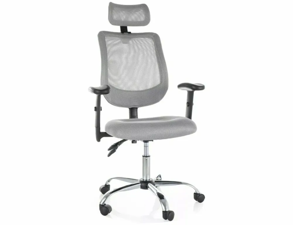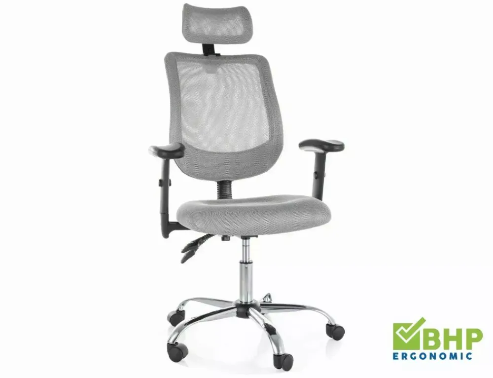Fotel obrotowy ergonomiczny, spełnia wymogi BHP dotyczące krzeseł biurowych zgodnie z rozporządzeniem Dz. U. poz.2367. Model posiada pozytywną ocenę fizjologiczno-ergonomiczną wydaną przez Instytut Medycyny Pracy (szczegóły w zakładce „PLIKI DO POBRANIA”). Tapicerka: siatka + tkanina membranowa, stelaż: metal, kolor: szary / srebrny. Multiblock, regulowane: podłokietniki, zagłówek, wysokość oparcia.
