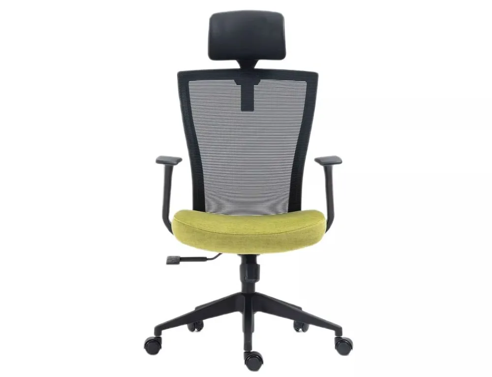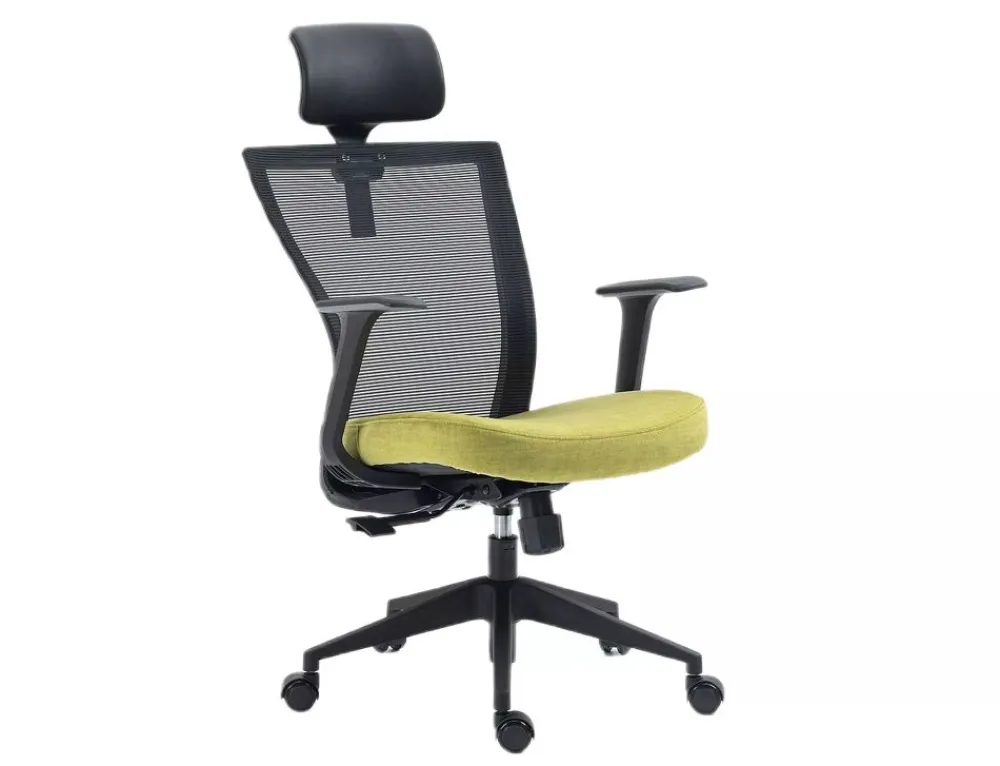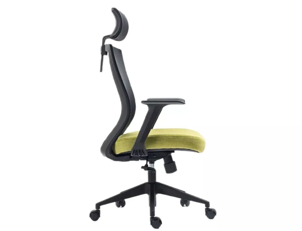 Fotel obrotowy, tkanina / siatka, kolor: zielony / czarny, stelaż tworzywo, kolor: czarny, multiblock, stałe podłokietniki, regulowany zagłówek.