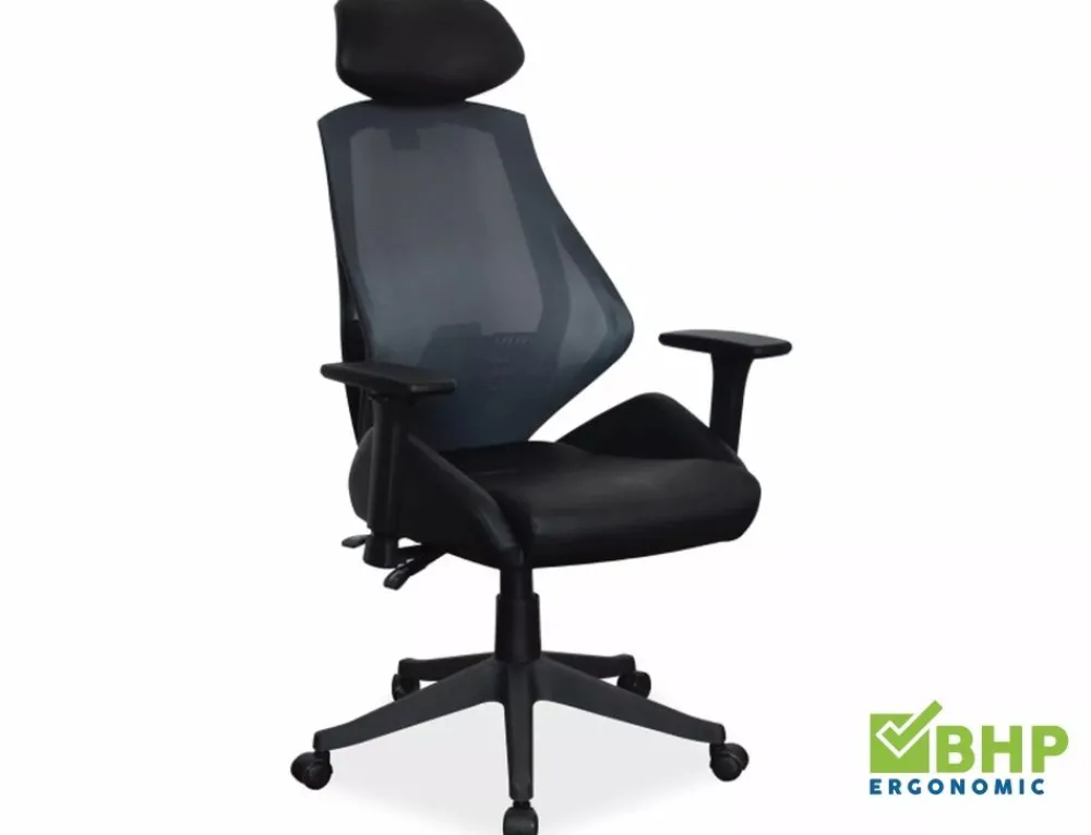 Fotel obrotowy ergonomiczny, spełnia wymogi BHP dotyczące krzeseł biurowych zgodnie z rozporządzeniem Dz. U. poz.2367. Model posiada pozytywną ocenę fizjologiczno-ergonomiczną wydaną przez Instytut Medycyny Pracy (szczegóły w zakładce „PLIKI DO POBRANIA”). Ekoskóra, czarny / siatka, czarny, mechanizm multiblock, regulowane: podłokietniki, zagłówek, odcinek lędźwiowy. Kółka kauczukowe, max obciążenie 130kg.