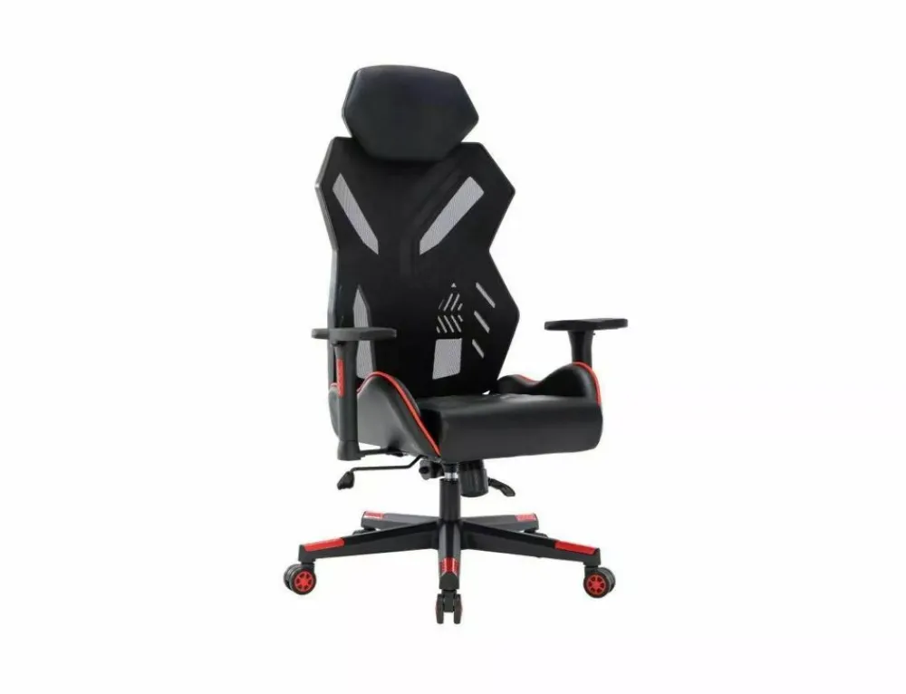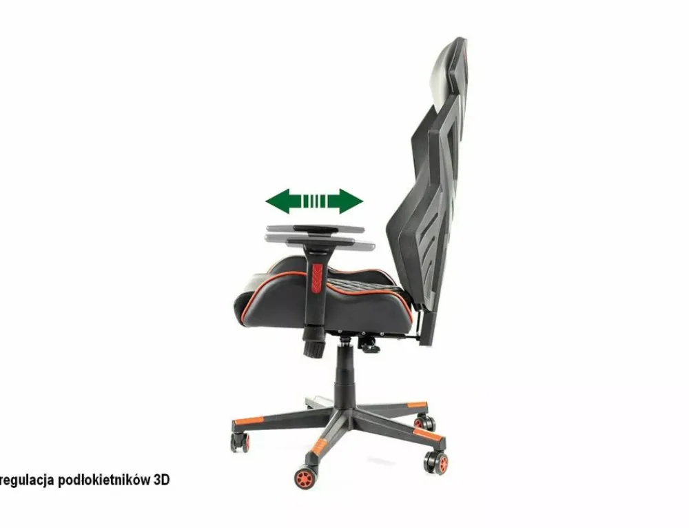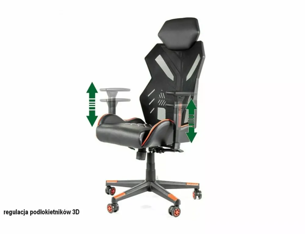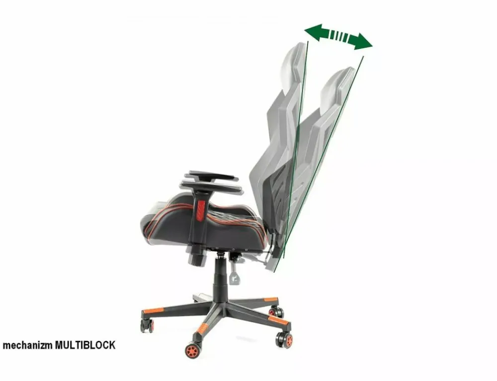 Fotel obrotowy, skóra syntetyczna / siatka, kolor: czarny, stelaż: kolor czarny + czerwony, mechanizm multiblock, regulowane podłokietniki 3D, kółka kauczukowe, max obciążenie 120kg.