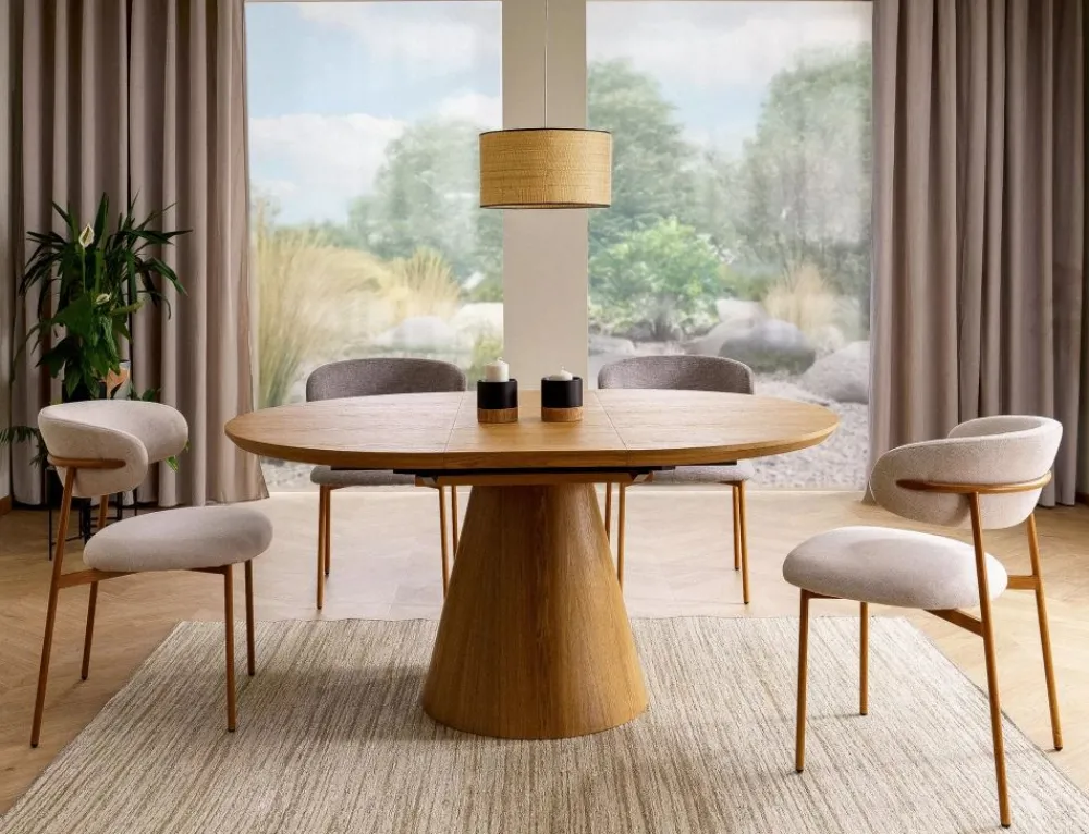 Krzesło, tapicerka: tkanina Brego 22, stelaż: metal, kolor: jasny beżowy / dąb.