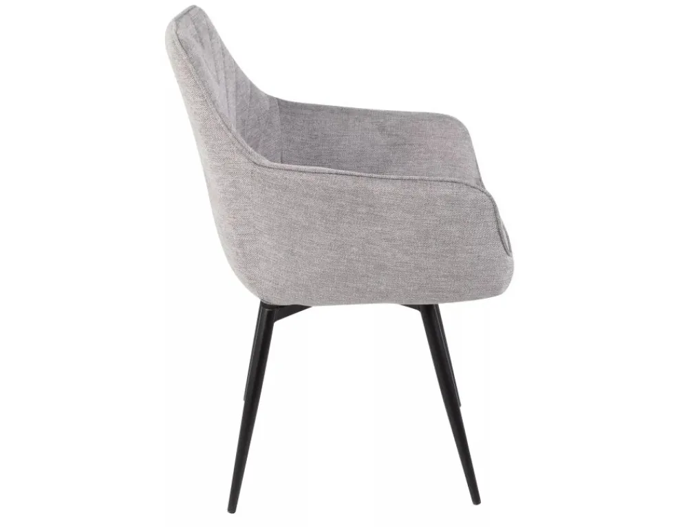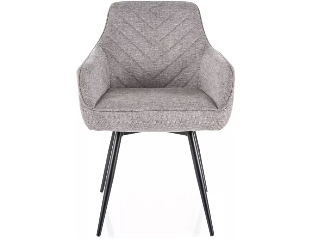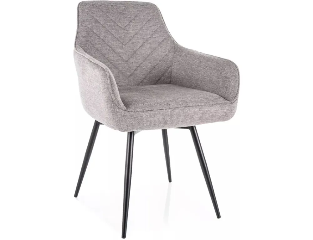 Krzesło, tapicerka: tkanina Brego 07, stelaż: metal, kolor: szary / czarny mat.Funkcja auto-return – siedzisko obracane w zakresie 180st, z funkcją powrotu do pierwotnej pozycji. Sprężyny kieszeniowe w siedzisku.