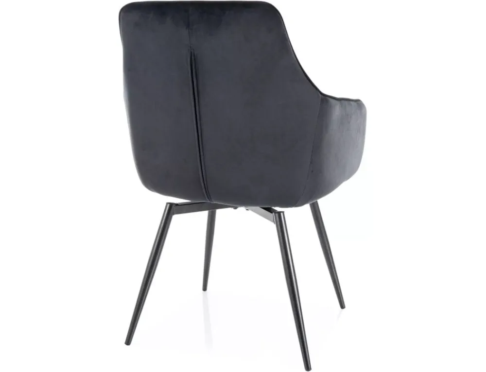 Krzesło, tapicerka: tkanina aksamit: Bluvel 19, stelaż: metal, kolor: czarny / czarny mat.Funkcja auto-return – siedzisko obracane w zakresie 180st, z funkcją powrotu do pierwotnej pozycji. Sprężyny kieszeniowe w siedzisku.