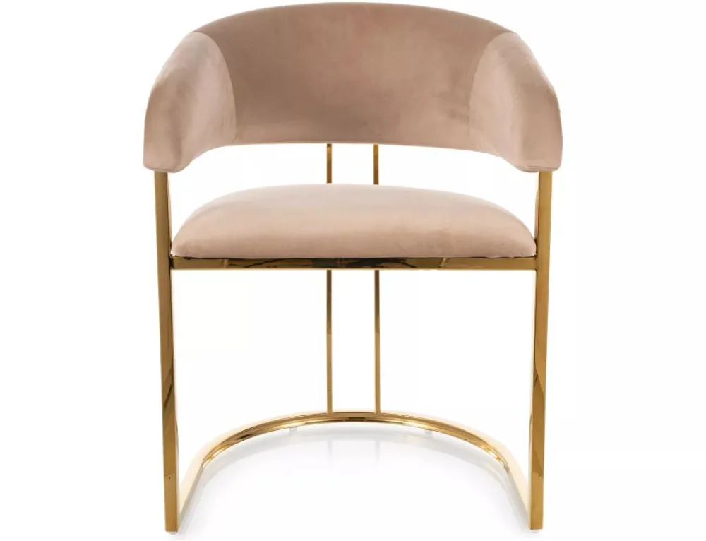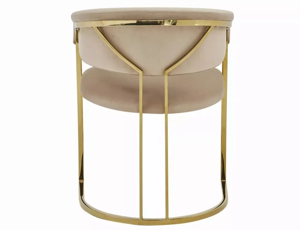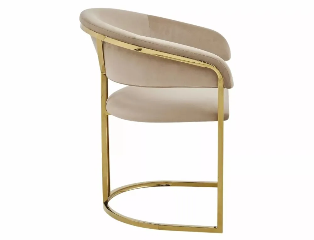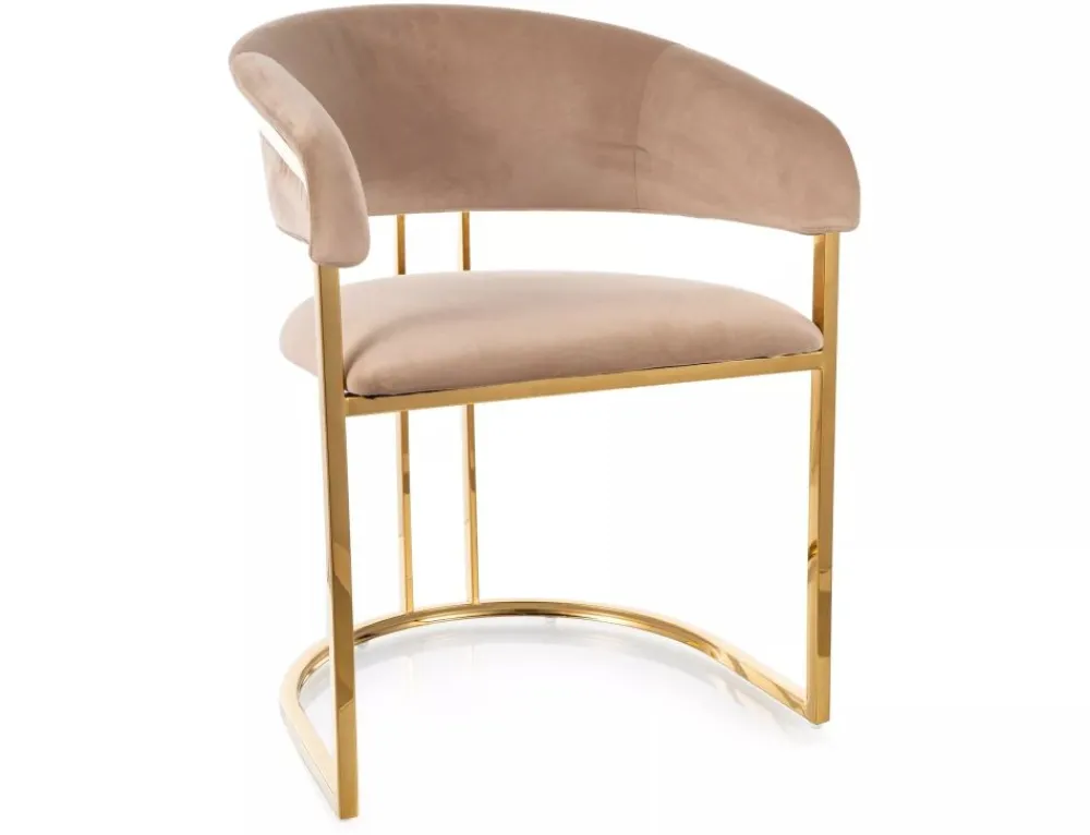 Krzesło, tapicerka: tkanina aksamit: Bluvel 28, stelaż: stal nierdzewna, kolor: beżowy / złoty.