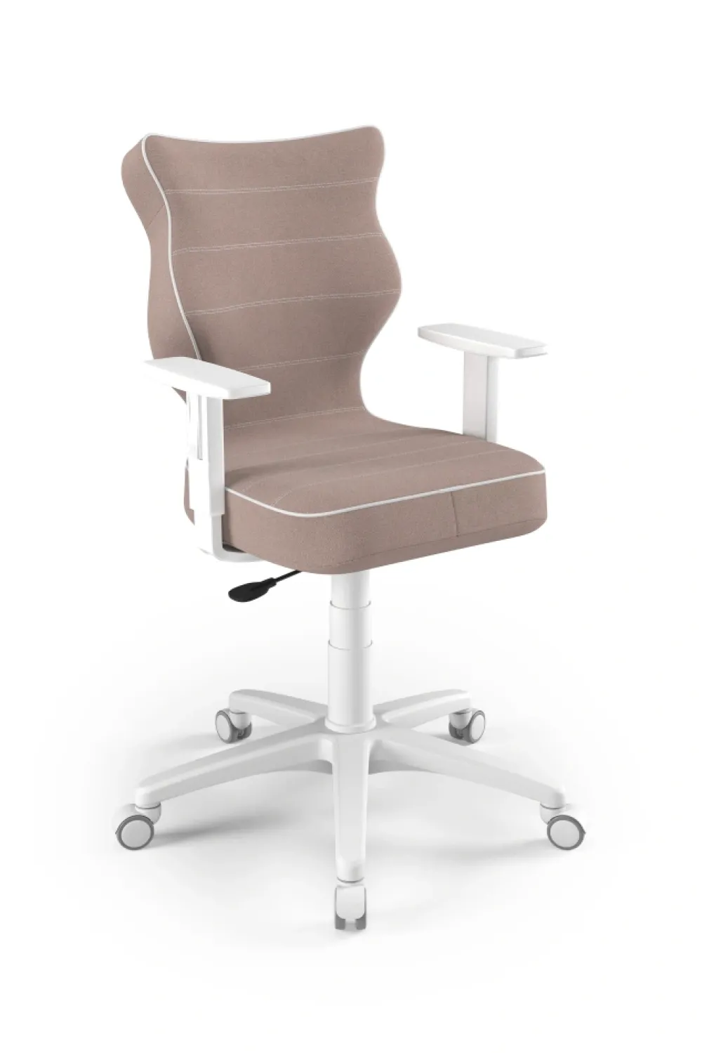 Duo to linia Dobrych Krzeseł posiadająca parametry ergonomiczne, które odpowiadają za zachowanie prawidłowej postawy siedzącej. Duo występuje w sześciu rodzajach tkanin i trzech kolorach komponentów – czarnym, białym oraz szarym. Wykończenie krzesła oraz szeroki wybór koloru tapicerki sprawia, że model pasuje do każdego wnętrza. Duo dostępne w rozmiarze 5 i 6 posiada regulowane podłokietniki umożliwiające wsunięcie krzesła pod blat biurka. Podstawę krzesła wykonano z tworzywa sztucznego oraz włókna szklanego. W zestawie znajdują się kółka miękkie umożliwiające ruch krzesła zarówno po powierzchniach twardych jak i wykładzinach. Produkt zaprojektowany i wyprodukowany w Polsce. Wzrost użytkownika, rozmiar 5: 146 – 176,5 cm Wzrost użytkownika, rozmiar 6: 159 – 188 cm Wysokość blatu biurka Rozmiar 5-6 – wysokość biurka 70 – 82 cm Siedzisko: Ergonomiczne siedzisko wykonane z tworzywa sztucznego Podłokietniki: Podłokietniki regulowane wykonane z tworzywa sztucznego, twarde Wersje kolorystyczne: biała Mechanizm: Blacha siedziska z dźwignią prostą wykonaną ze stali Kolumna: Podnośnik gazowy wykonany ze stali i tworzywa sztucznego Wersje kolorystyczne: czarna Osłonka: Teleskopowa osłonka na podnośnik gazowy wykonana z tworzywa sztucznego Wersje kolorystyczne: biała Baza: Podstawa pięcioramienna wykonana z tworzywa sztucznego Wersje kolorystyczne: biała Kółka: Kółka miękkie wykonane z tworzywa sztucznego, średnica 50 mm, średnica trzpienia fi 11 Wersje kolorystyczne: biała