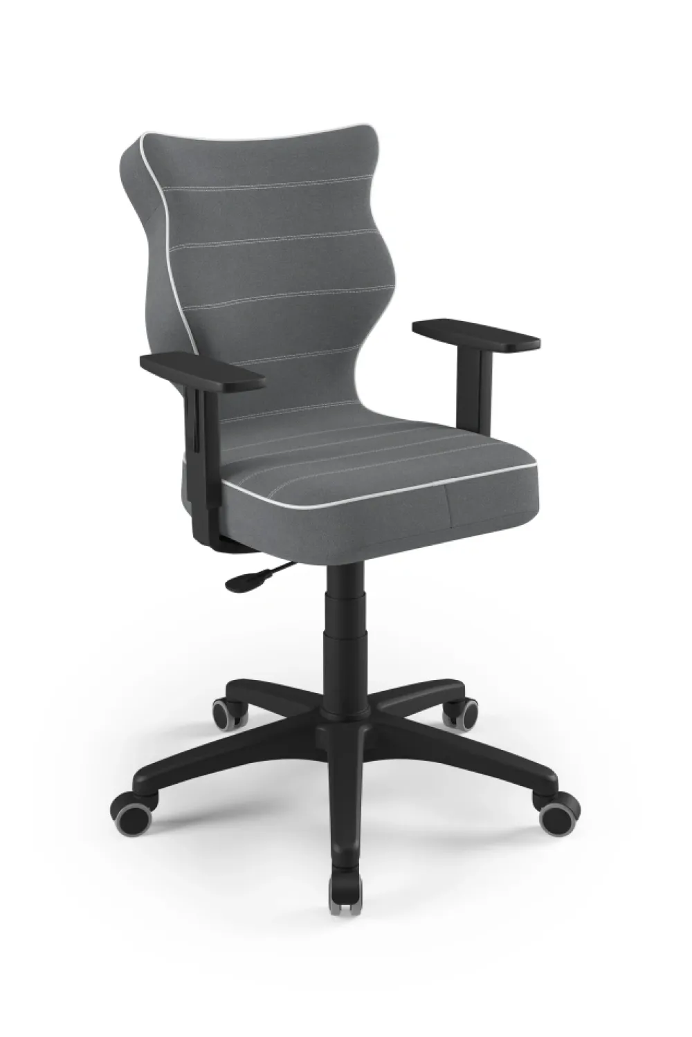 Duo to linia Dobrych Krzeseł posiadająca parametry ergonomiczne, które odpowiadają za zachowanie prawidłowej postawy siedzącej. Duo występuje w sześciu rodzajach tkanin i trzech kolorach komponentów – czarnym, białym oraz szarym. Wykończenie krzesła oraz szeroki wybór koloru tapicerki sprawia, że model pasuje do każdego wnętrza. Duo dostępne w rozmiarze 5 i 6 posiada regulowane podłokietniki umożliwiające wsunięcie krzesła pod blat biurka. Podstawę krzesła wykonano z tworzywa sztucznego oraz włókna szklanego. W zestawie znajdują się kółka miękkie umożliwiające ruch krzesła zarówno po powierzchniach twardych jak i wykładzinach. Produkt zaprojektowany i wyprodukowany w Polsce. Wzrost użytkownika, rozmiar 5: 146 – 176,5 cm Wzrost użytkownika, rozmiar 6: 159 – 188 cm Wysokość blatu biurka Rozmiar 5-6 – wysokość biurka 70 – 82 cm Siedzisko: Ergonomiczne siedzisko wykonane z tworzywa sztucznego Podłokietniki: Podłokietniki regulowane wykonane z tworzywa sztucznego, twarde Wersje kolorystyczne: czarna Mechanizm: Blacha siedziska z dźwignią prostą wykonaną ze stali Kolumna: Podnośnik gazowy wykonany ze stali i tworzywa sztucznego Wersje kolorystyczne: czarna Osłonka: Teleskopowa osłonka na podnośnik gazowy wykonana z tworzywa sztucznego Wersje kolorystyczne: czarna Baza: Podstawa pięcioramienna wykonana z tworzywa sztucznego Wersje kolorystyczne: czarna Kółka: Kółka miękkie wykonane z tworzywa sztucznego, średnica 50 mm, średnica trzpienia fi 11 Wersje kolorystyczne: czarna
