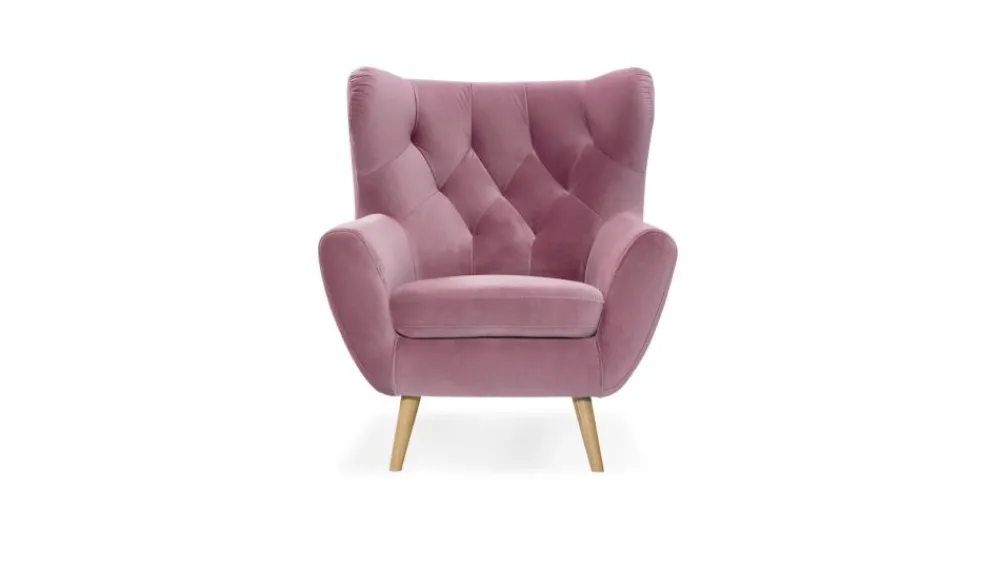 Fotel dostępny jest w unikatowej tkaninie o pięknym, różowym odcieniu Solo Idesin col. 255. Tkanina jest welwetowa, bardzo przyjemna i gładka w dotyku. Dodatkowo tkanina jest hydrofobowa! – technologia Nano Block.