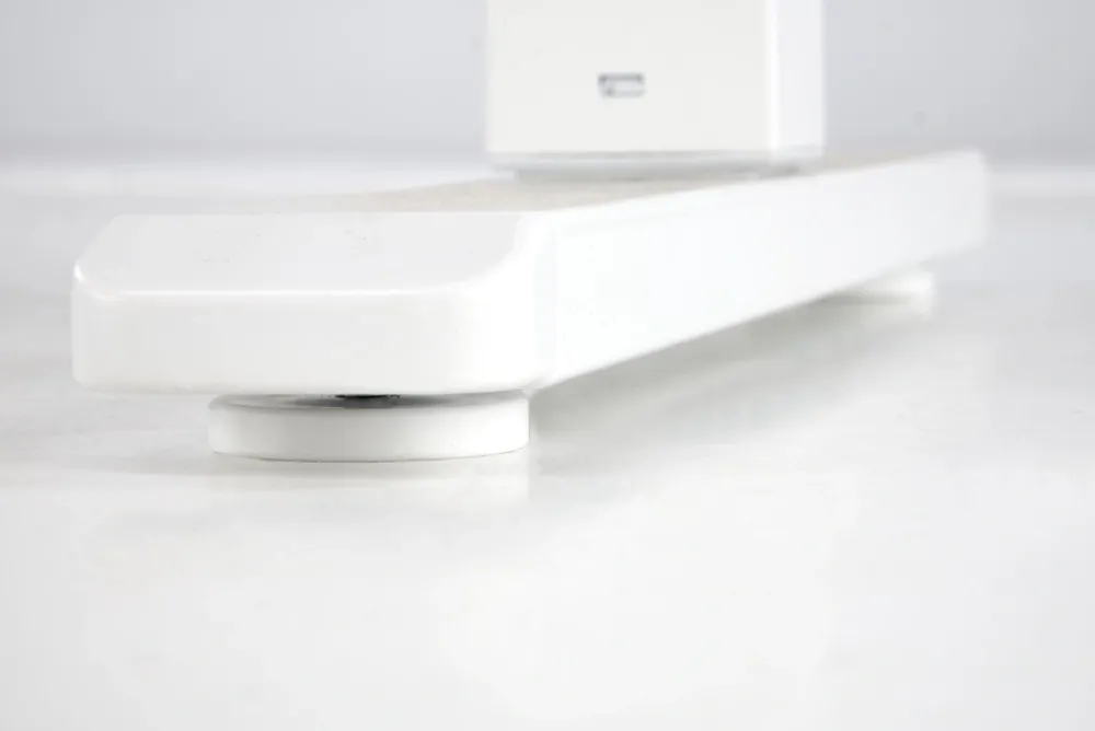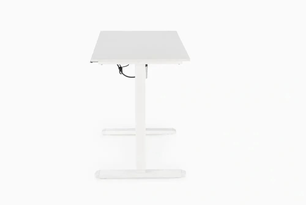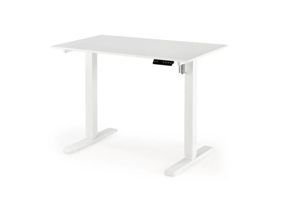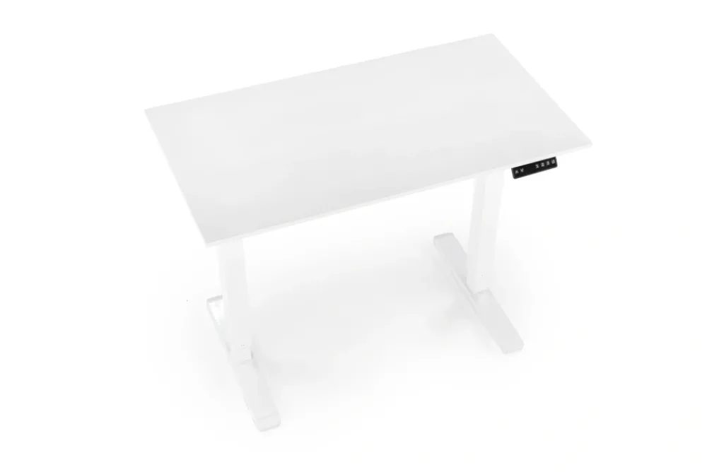 wymiary: 105/56/73-118 cm; biurko z funkcją regulacji wysokości, materiał: płyta meblowa okleinowana – melamina / stal malowana proszkowo, kolor: biały