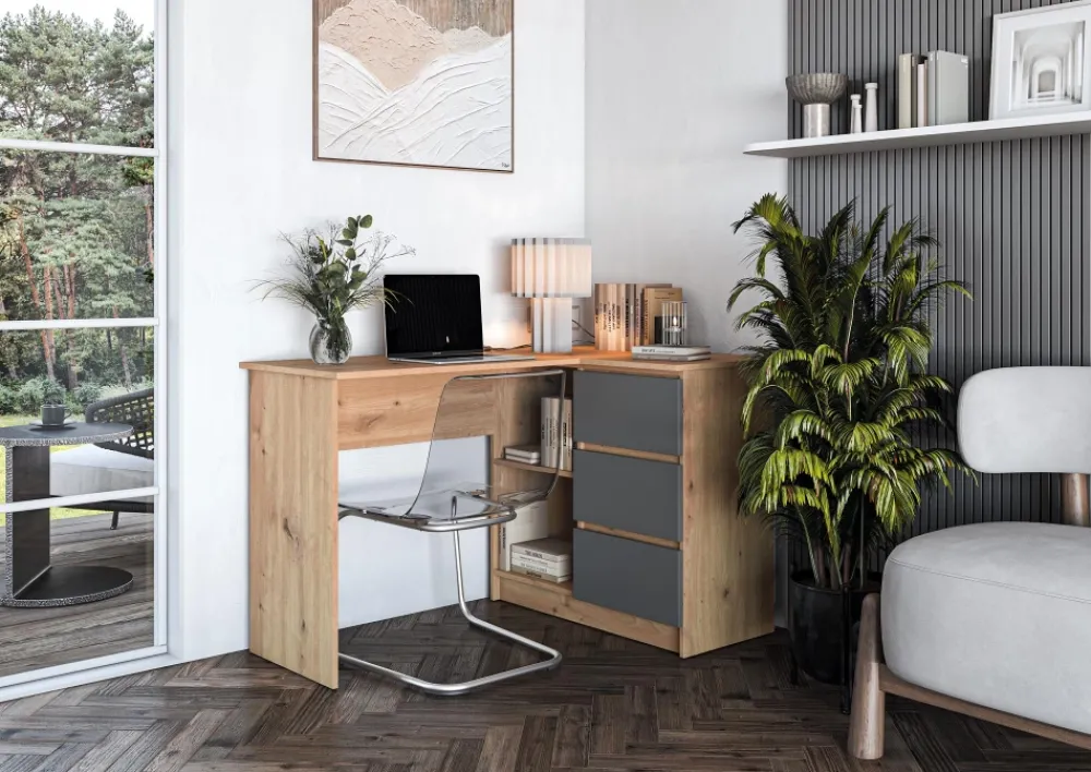 wymiary: 124/85/76 cm, materiał: płyta meblowa laminowana, kolory: dąb artisan – grafitowy