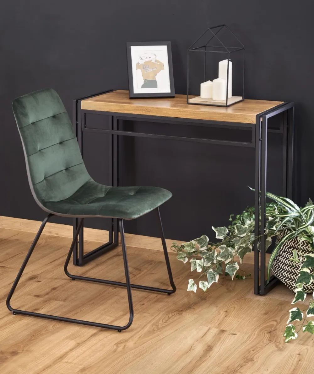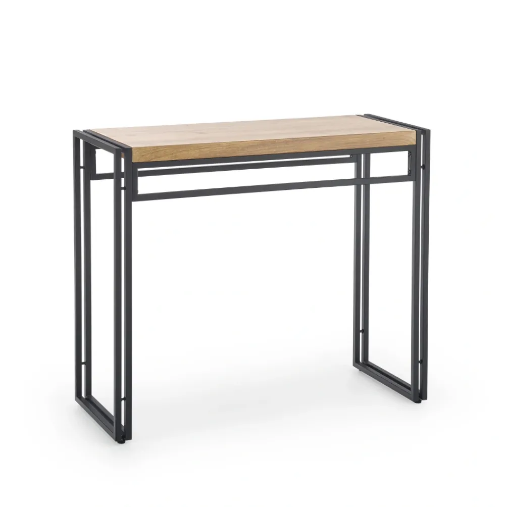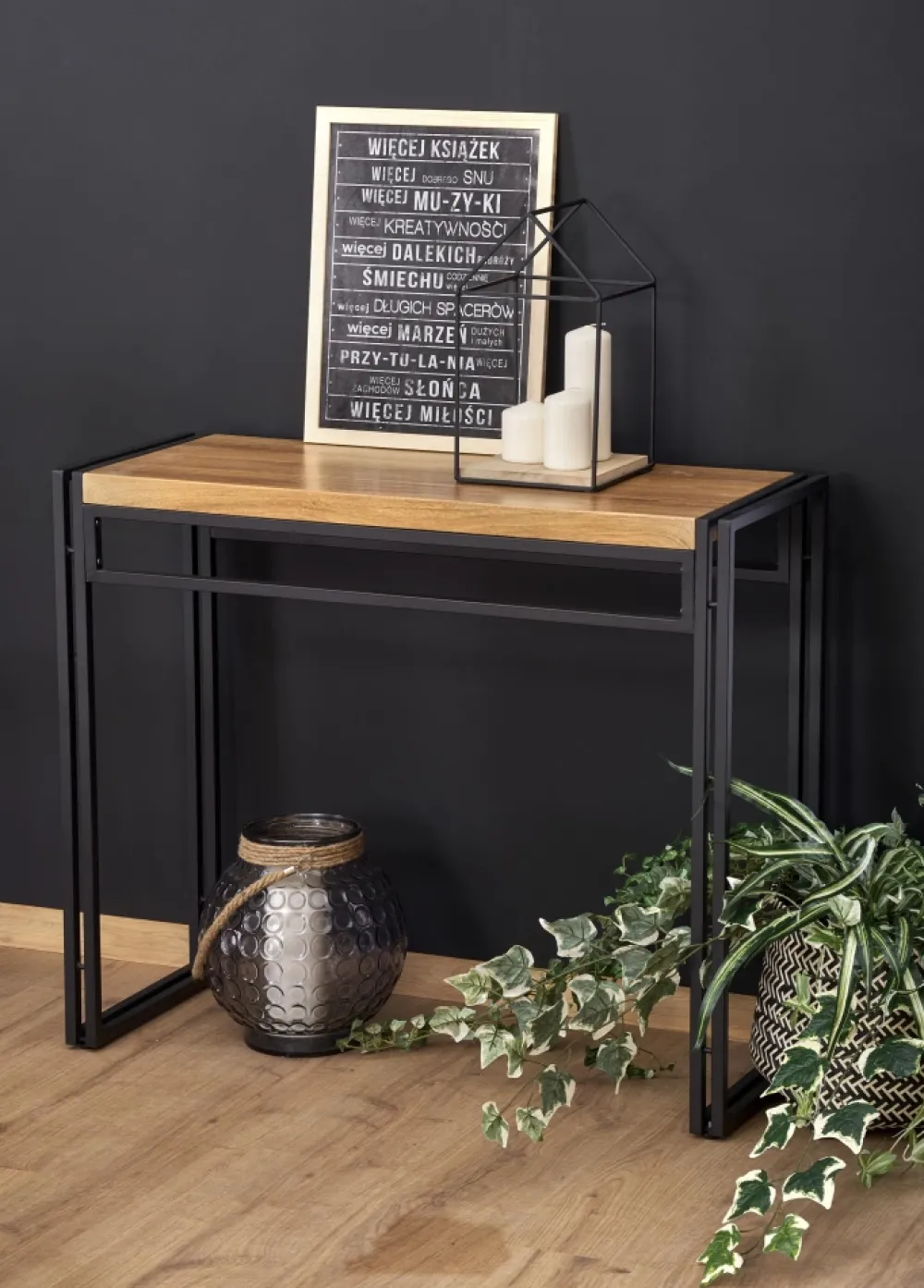 wymiary: 90/35/76 cm, materiał: MDF okleinowany / stal malowana proszkowo, kolor: dąb złoty – czarny