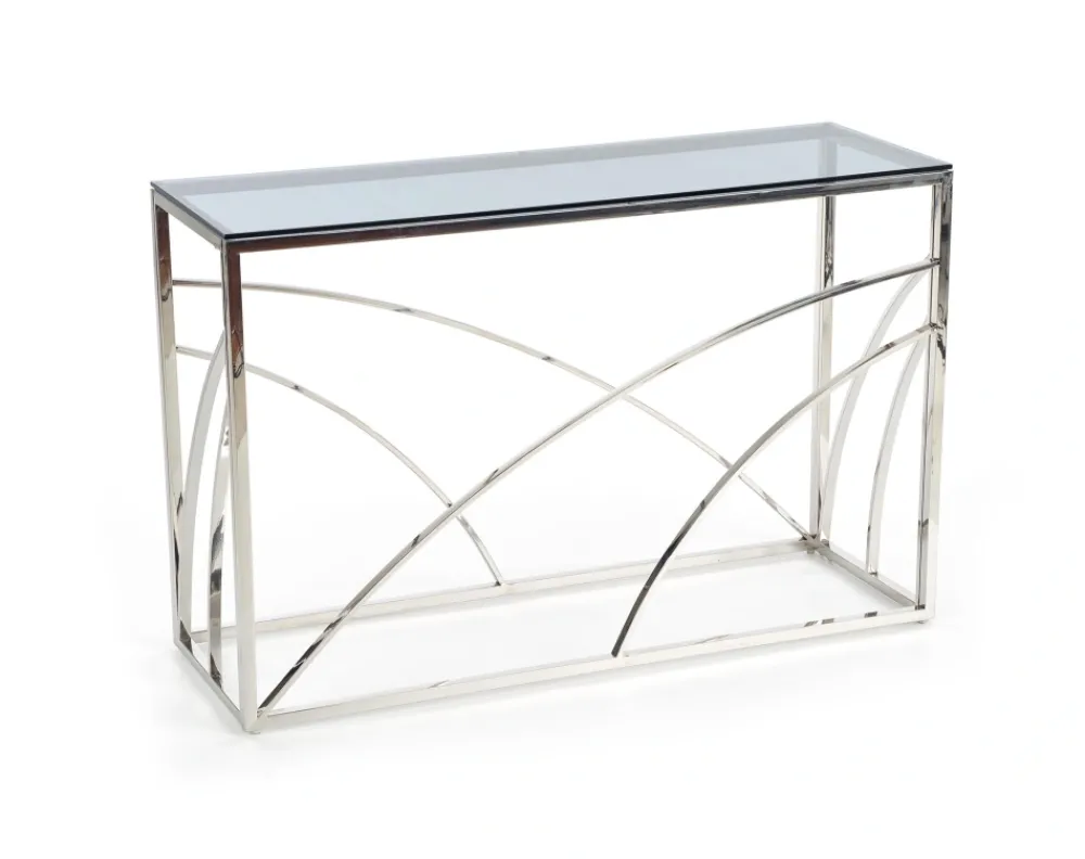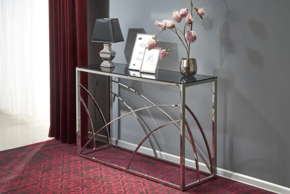 wymiary: 120/40/78 cm, materiał: szkło / stal chromowana, kolor: dymiony / srebrny